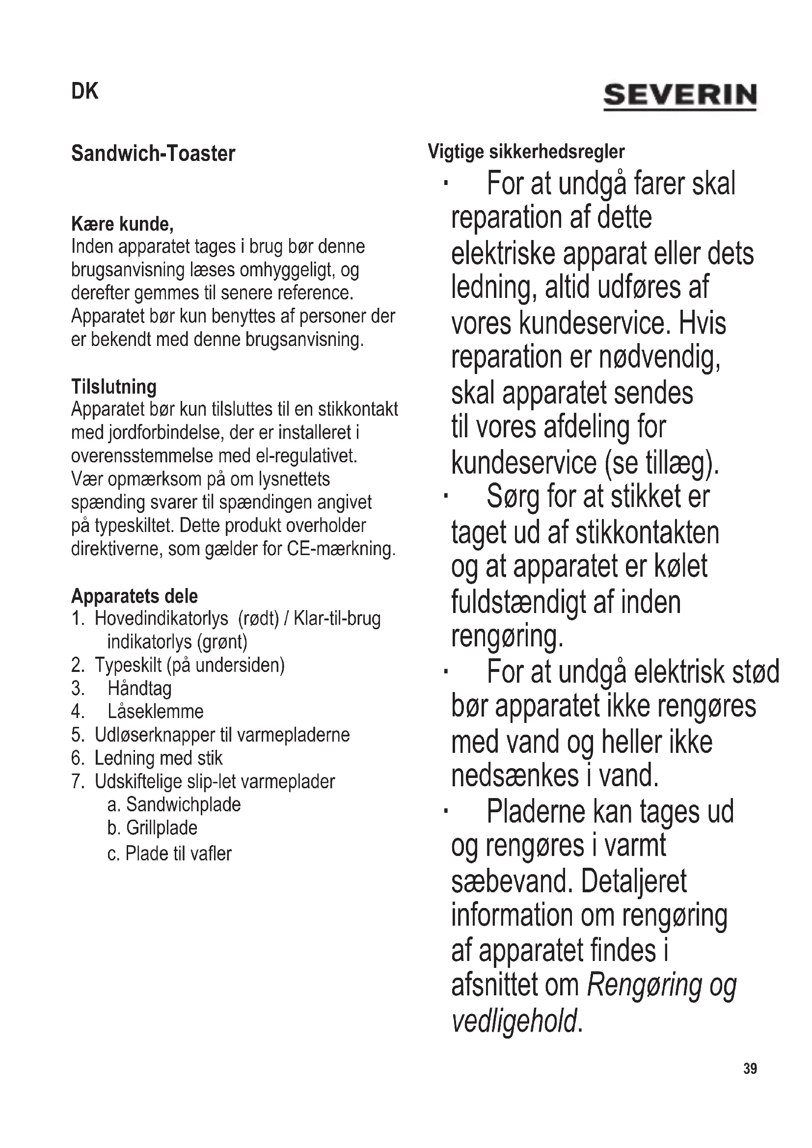 SA 2968 - Klemme til croque monsieur SEVERIN - Gratis brugsanvisning og manual