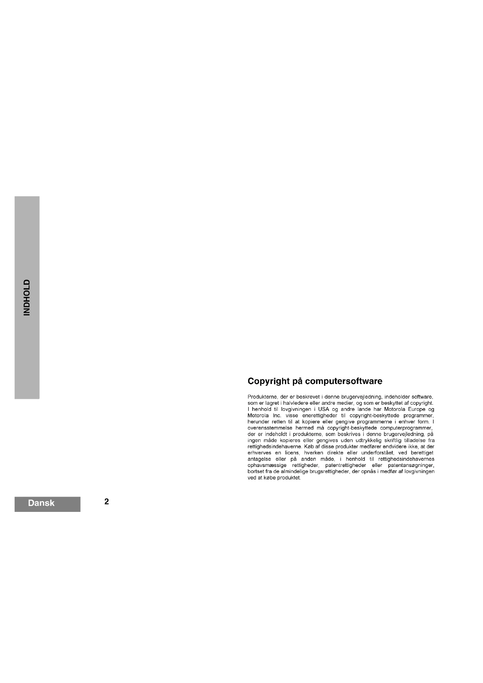 I denne brugervejledning beskrives betjeningen af de bærbare radiomodeller CP040.VIGTIGT!Denne radio er udelukkende beregnet til erhvervsmæssig anvendelse og opfylder ICNIRP-kravene vedrørende påvirkninger fra radiofrekvenser. Før du tager dette produkt i brug, skal du læse oplysningerne om påvirkninger fra radiofrekvenser samt betjeningsanvisningerne i hæftet vedrørende produktsikkerhed og påvirkninger fra radiofrekvenser (Motorola-publikation, nr. 686411725_) for at sikre, at eksponeringsgrænserne for radiofrekvenser overholdes.