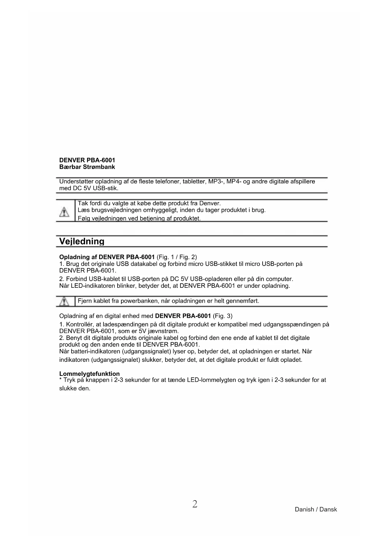 | Navn | DENVER PBA-6001 | Indgangsspænding | DC 5V 1A | |