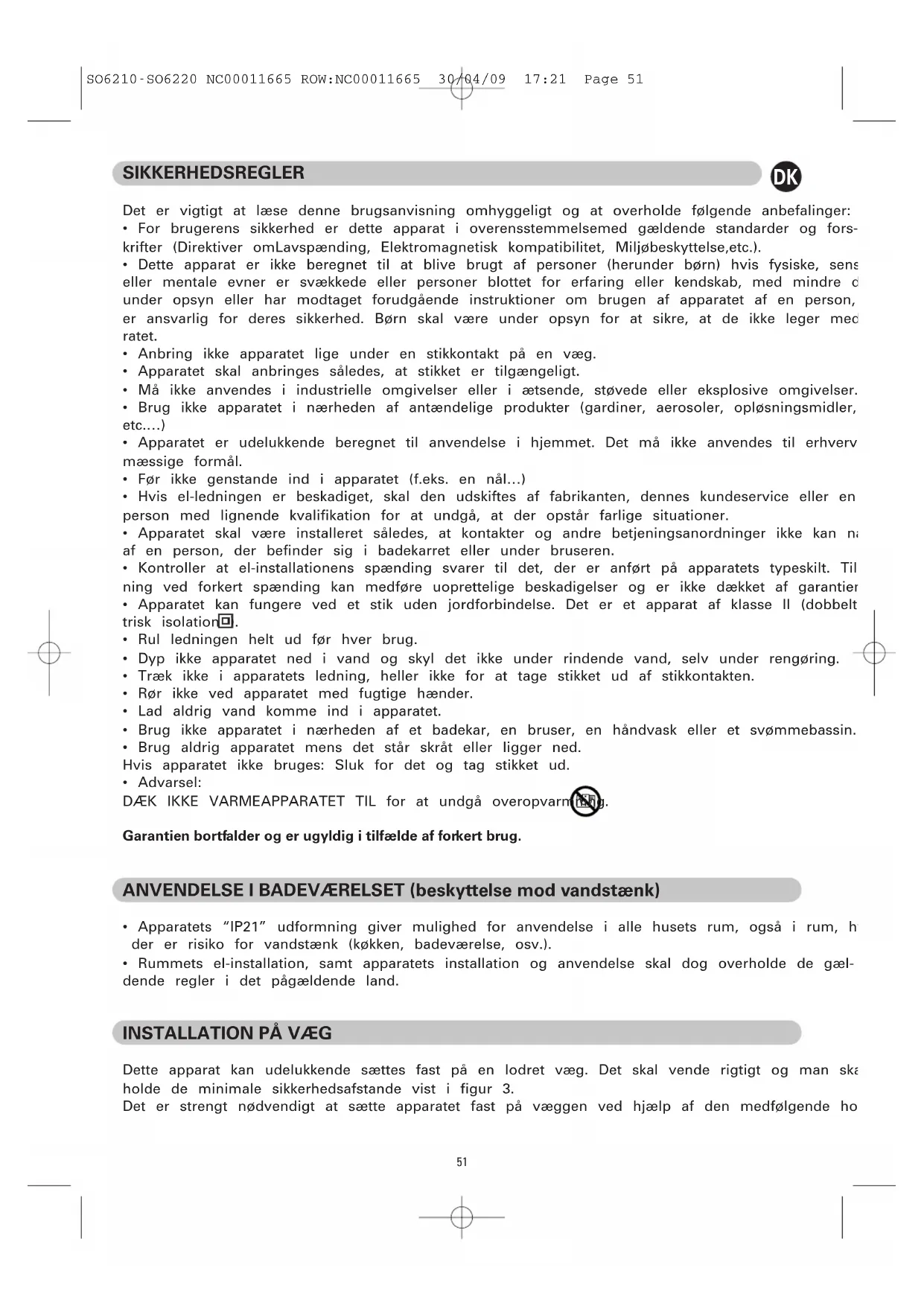 SO6210-SO6220 NC00011665 ROW:NC00011665 30/04/09 17:21 Page 50SIKKERHEDSREGLER Det er vigtigt at læse denne brugsanvisning omhyggeligt og at overholde følgende anbefalinger:
