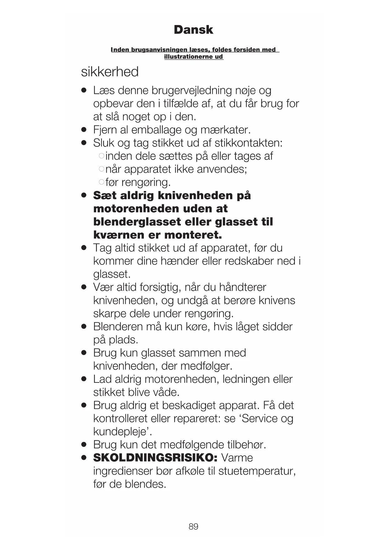 nden brugsanvisningen læses, foldes forsiden med llustrationerne ud DanskG Efterlad aldrig apparatet uden opsyn, når det er i drift.