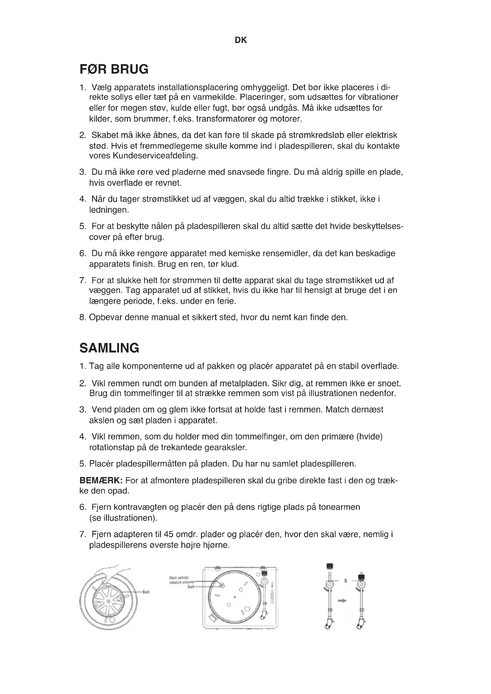 BEMÆRK: For at afmontere pladespilleren skal du gribe direkte fast i den og træk- ke den opad.