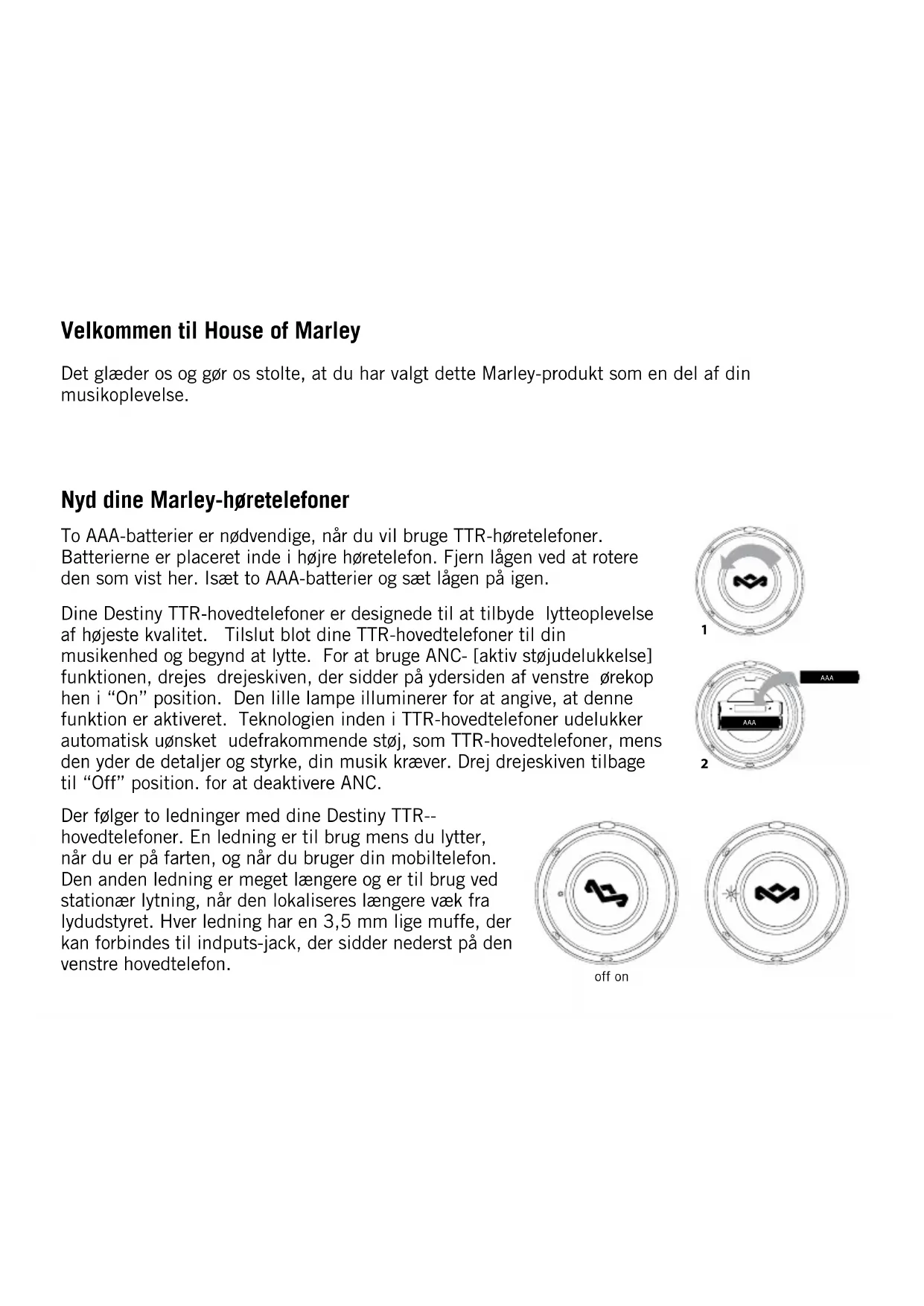 Download vejledningen til din øretelefon i PDF-format gratis! Find din vejledning TTR EMDH003 - HOUSE OF MARLEY og tag din elektroniske enhed tilbage i hånden. På denne side er alle dokumenter nødvendige for brugen af din enhed offentliggjort. TTR EMDH003 af mærket HOUSE OF MARLEY.