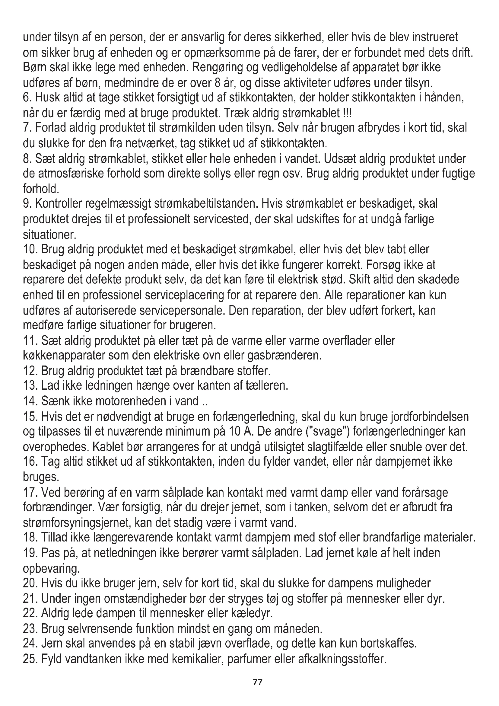 24. Jern skal anvendes på en stabil jævn overflade, og dette kan kun bortskaffes.