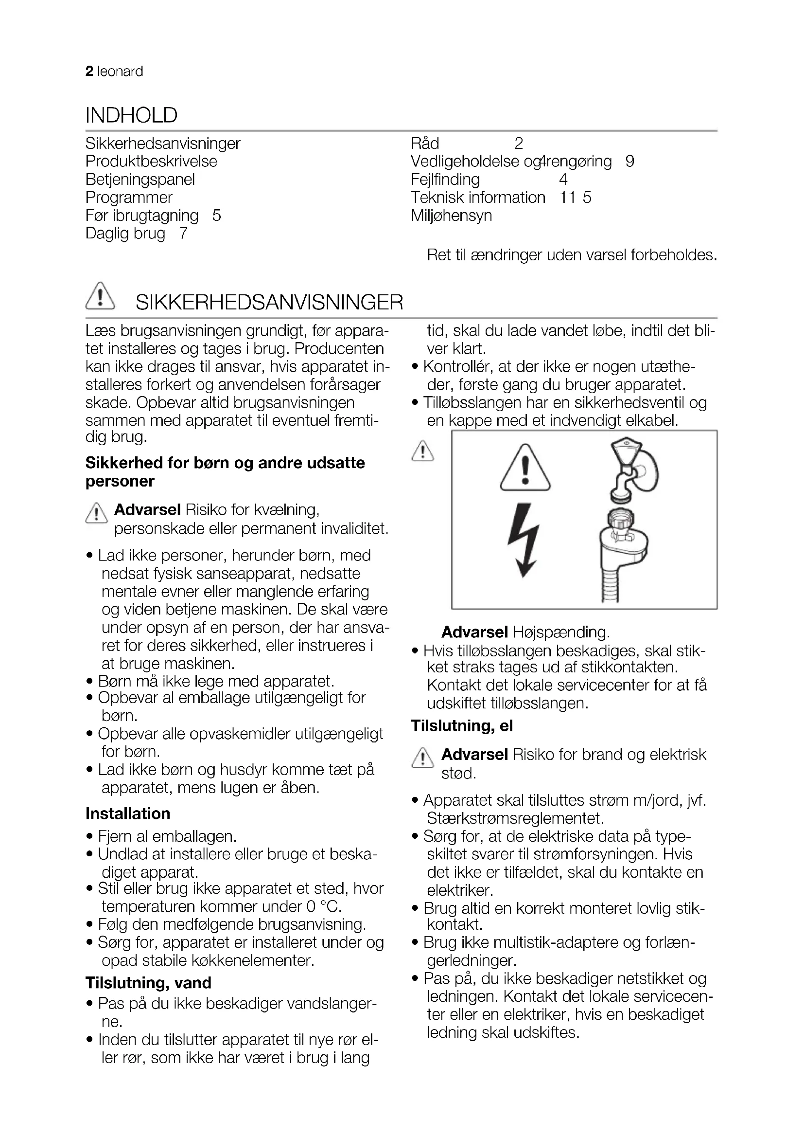 - Apparatets specificationer må ikke æn-dres.