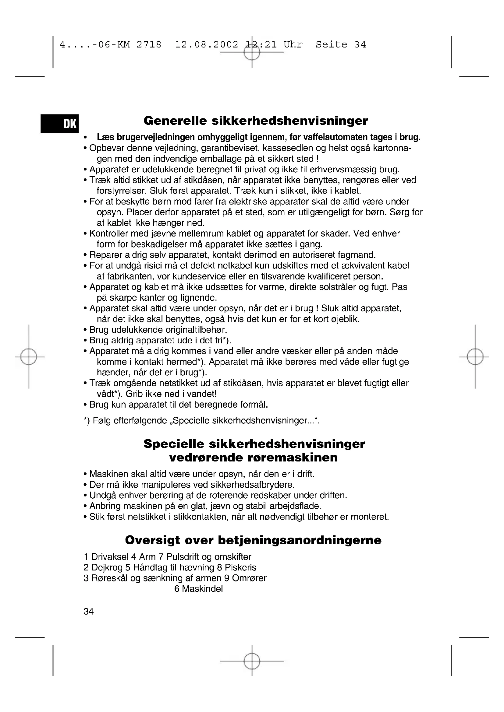 - Brug kun apparatet til det beregnede formål. *) Følg efterfølgende „Specielle sikkerhedshenvisninger...“. Specielle sikkerhedshenvisninger vedrørende røremaskinen