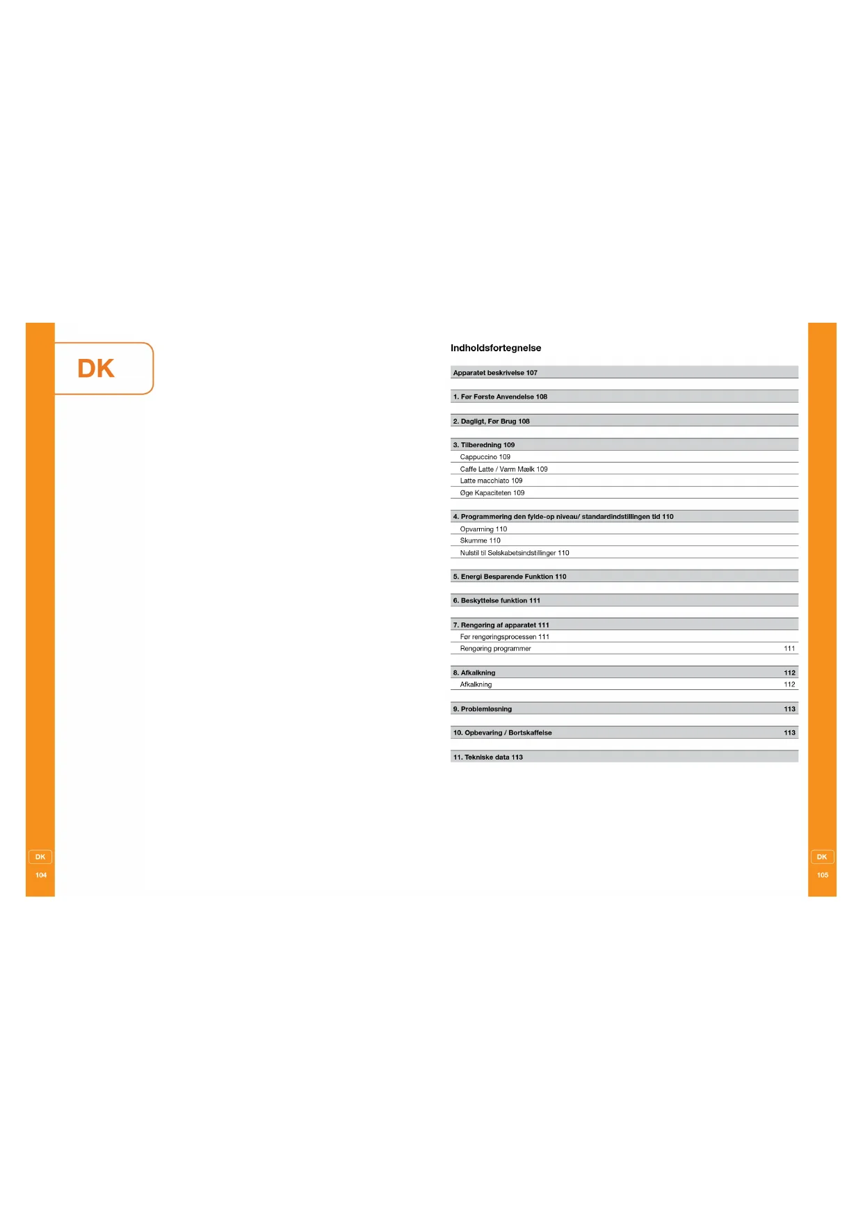 Opvarming 110 Skumme 110 Nulstil til Selskabetsindstillinger 110