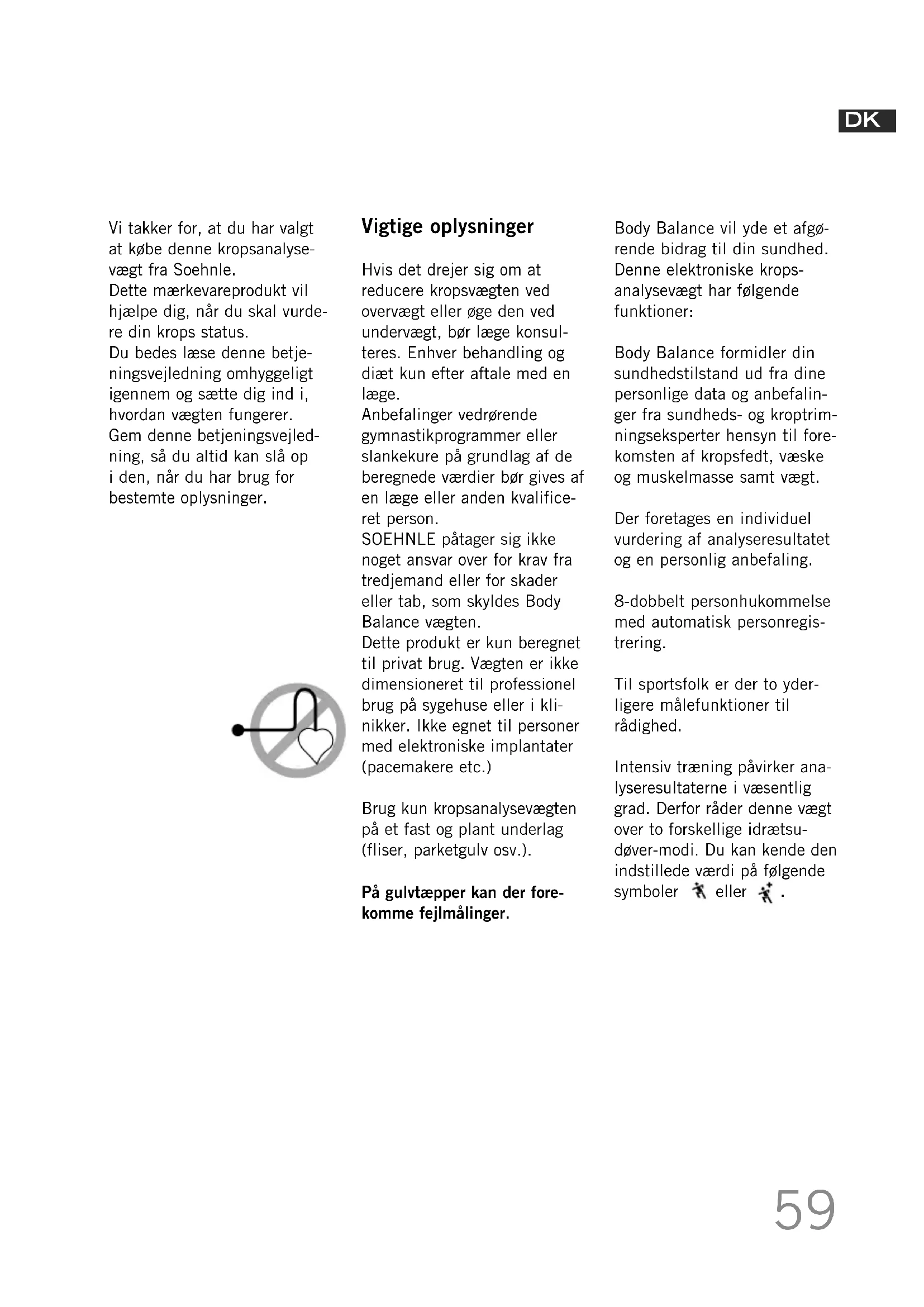 SOEHNLE pátager sig ikke noget ansvar over for krav fra tredjemand eller for skader aller tab, som skyldes Body Balance vægten.