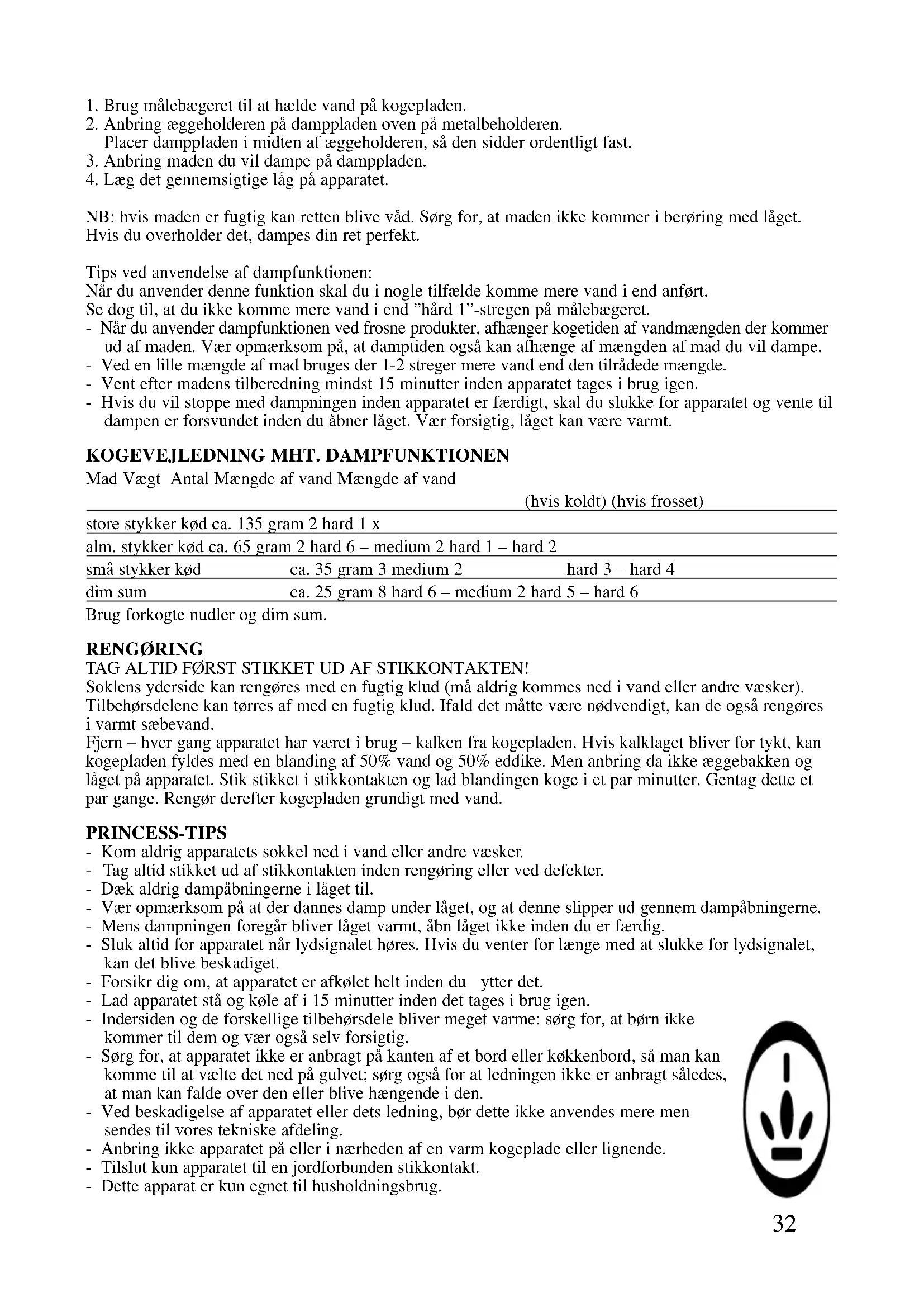Apparatet kan/DDke kun anvendes til at koge aeg, men ogsa til at dampe retter. Der er mange variationer mulige.