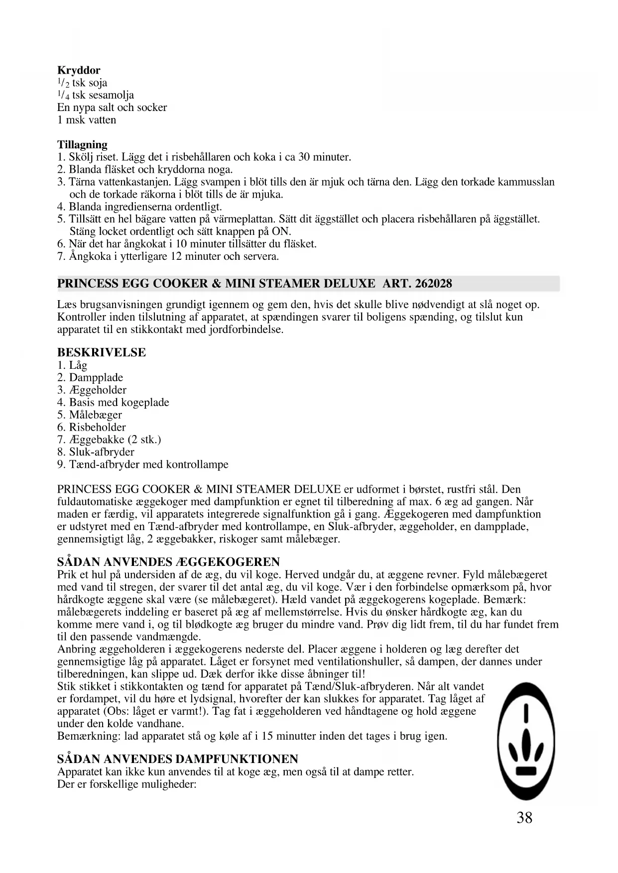 BRUGSANVISNING Egg Cooker & Mini Steamer DeLuxe 262028 PRINCESS