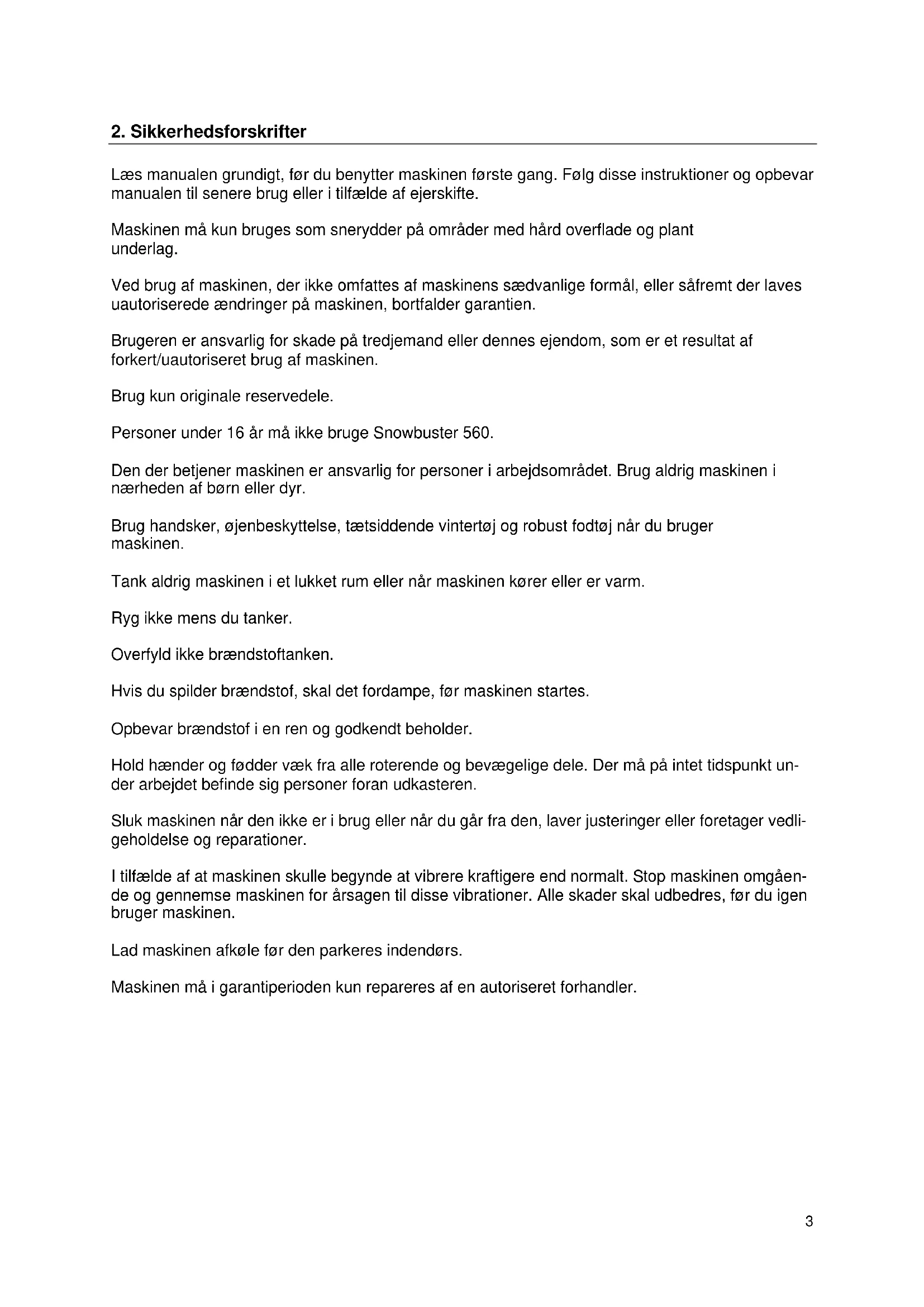 Personer under 16 År må ikke bruge Snowbuster 560.