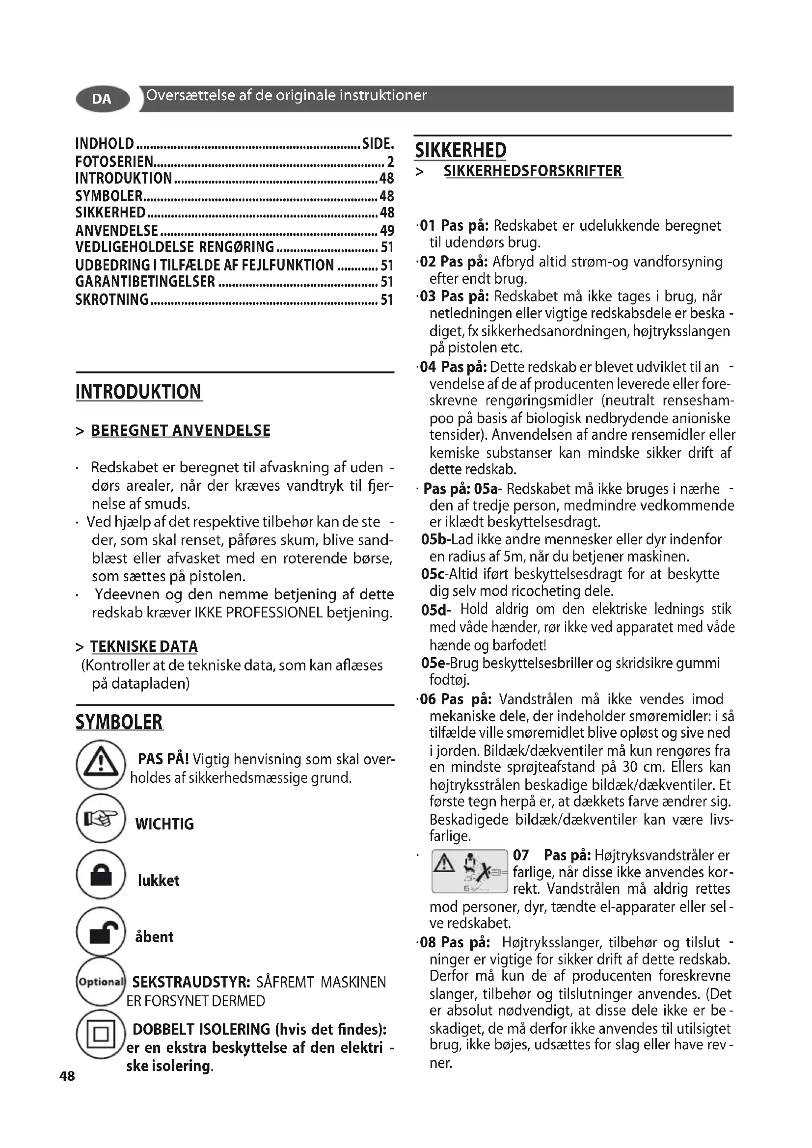 PAS PÅ! læs instruktionsbogen før maskinen tages i brug. sd. 48