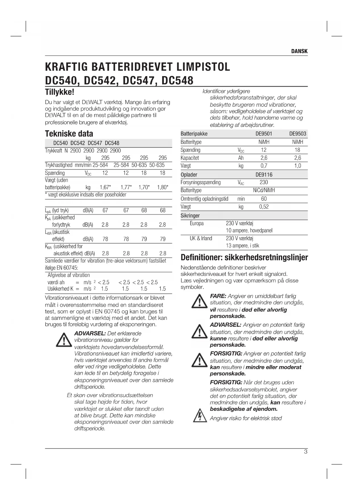 BRUGSANVISNING DC548 DEWALT