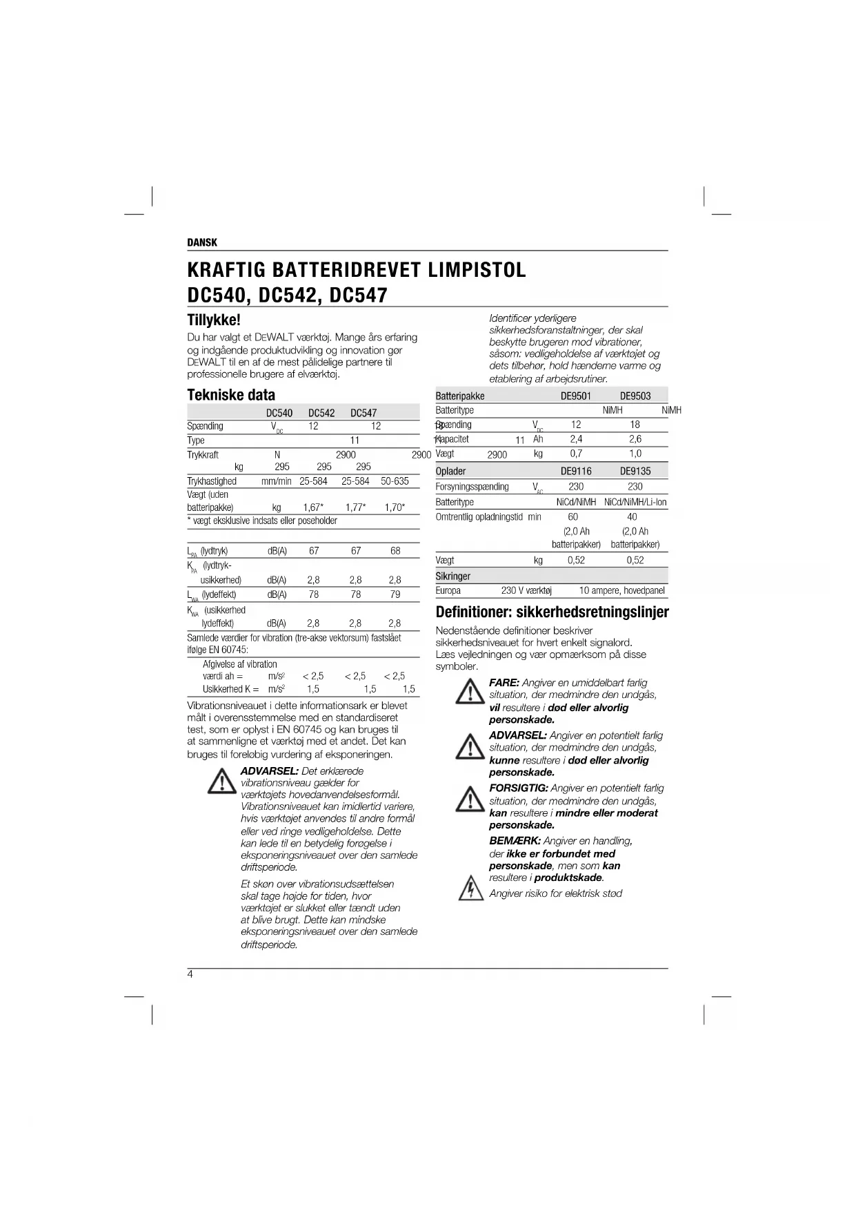 Find enhedens vejledning gratis DC542 DEWALT i PDF-format.