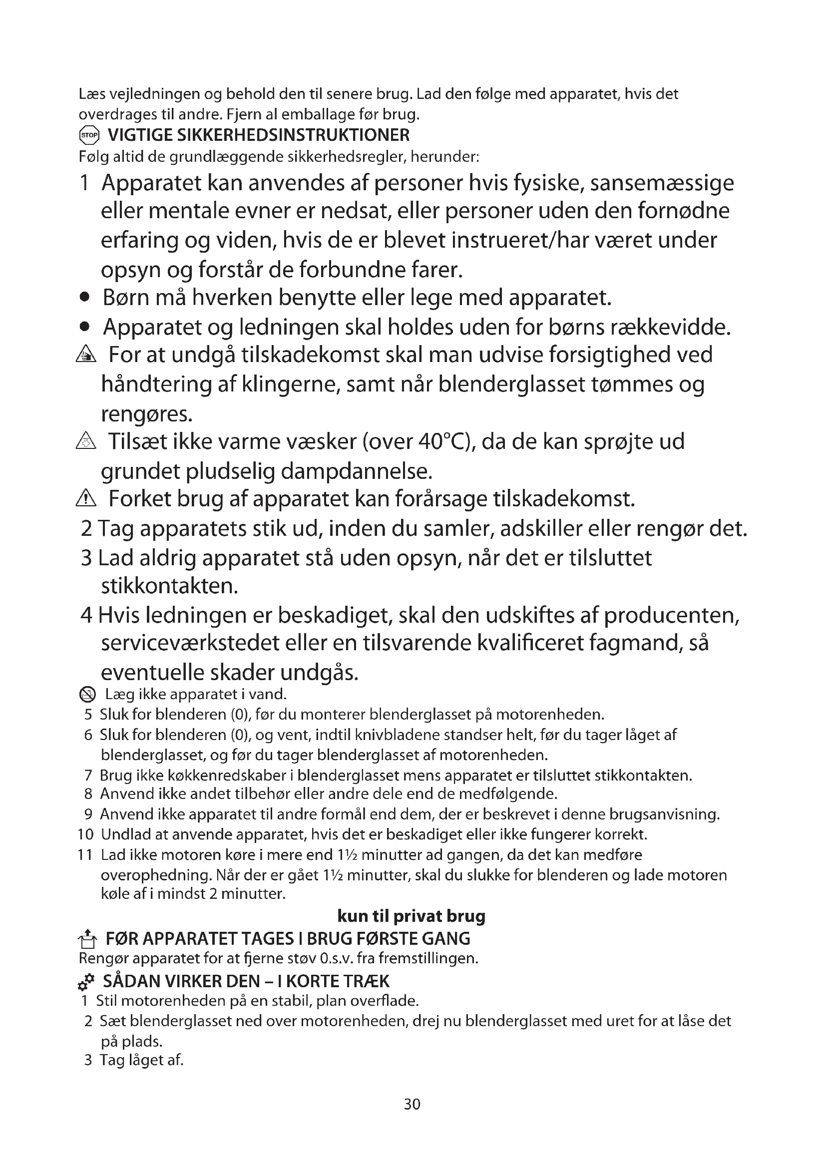 11 Lad seks motoren kore i mere end 1 12 minutter ad gangen, da det kan medfrole overophedning. När der er gaget 1 12 minutter, skal du slukke for blenderen og lade motoren kole af i mindst 2 minutter.