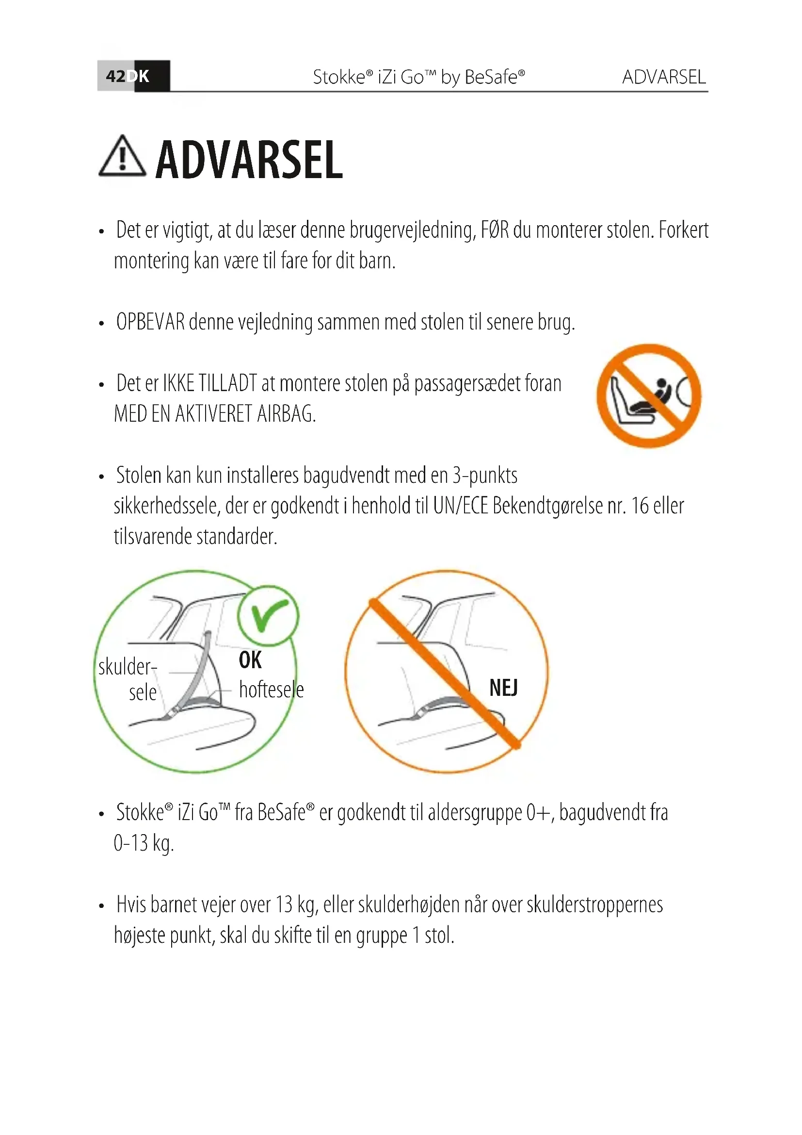 User instruction. Play movie.Stokke® iZi Go™ by BeSafe® 42 DK ADVARSEL