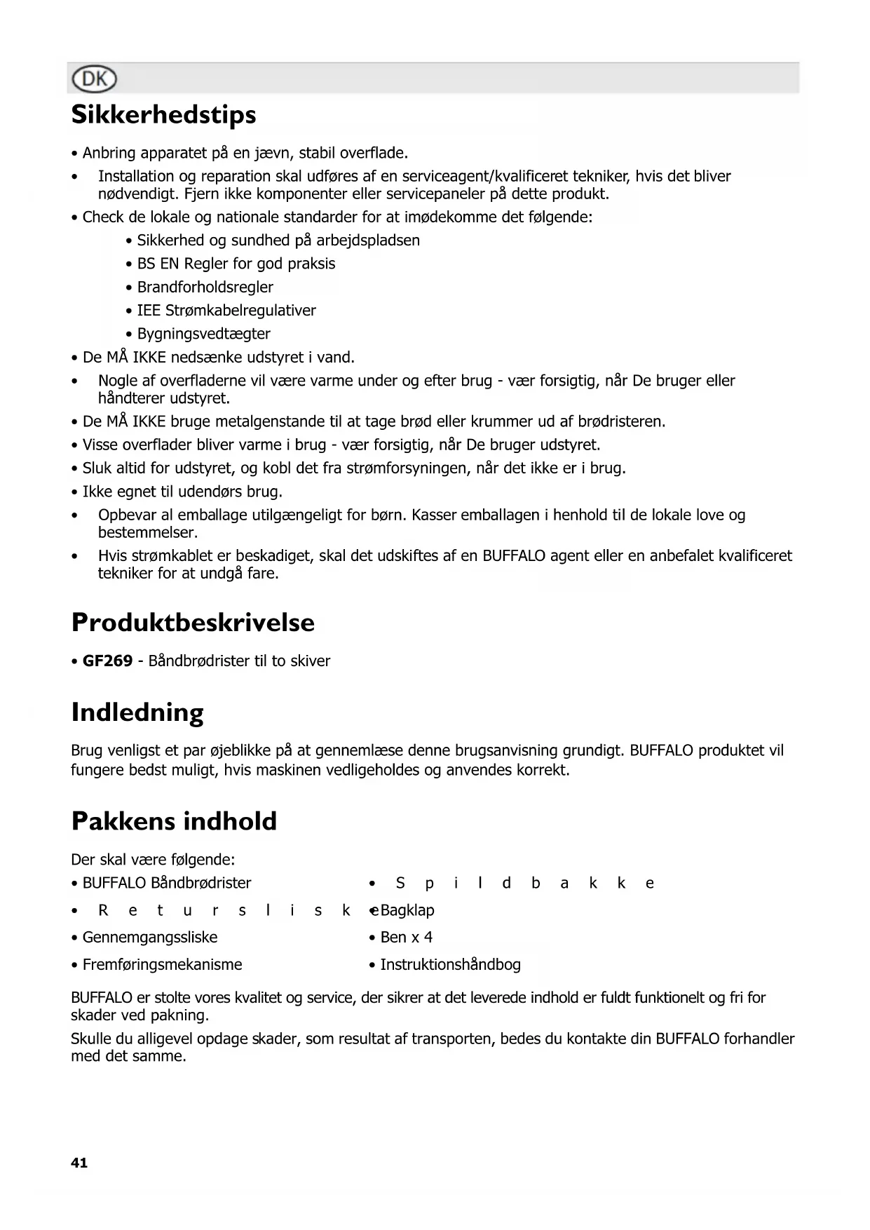 BRUGSANVISNING GF269 BUFFALO