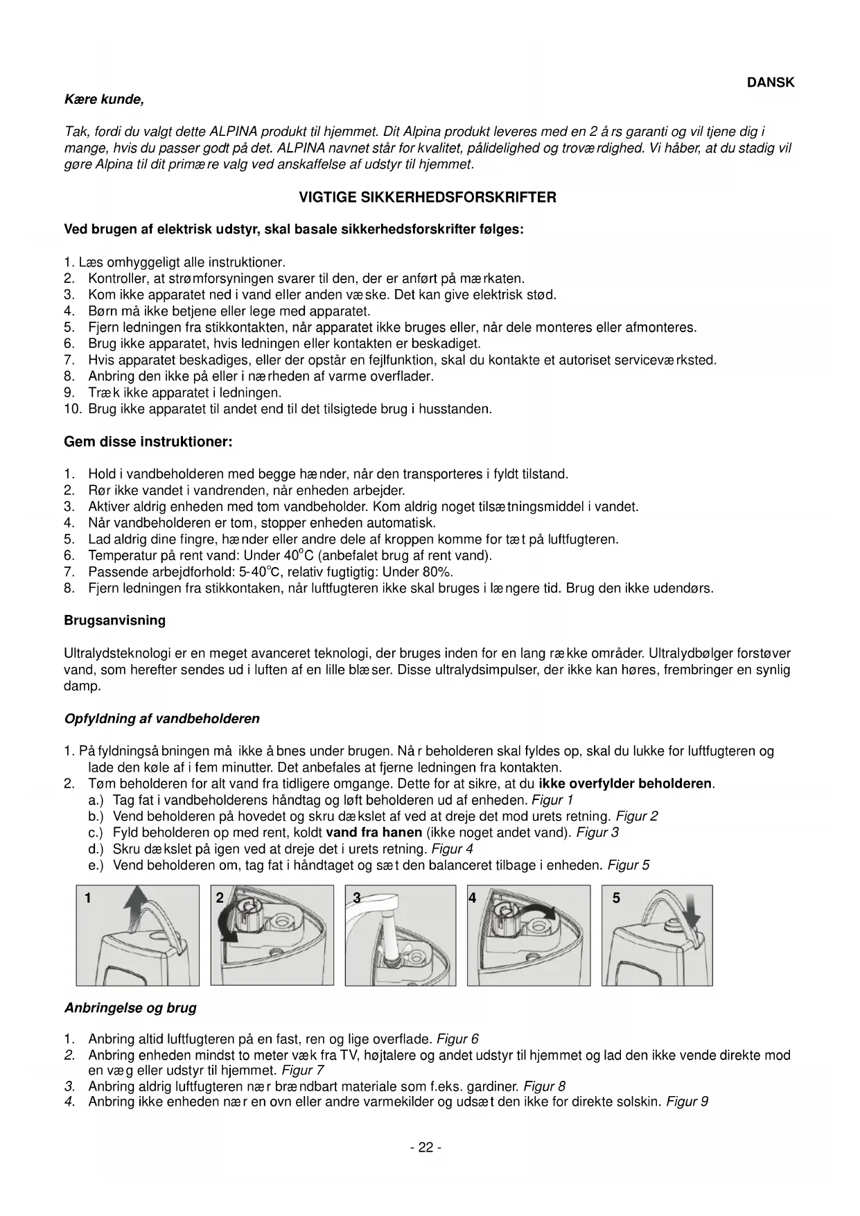 Tak, fordi du valgt dette ALPINA produkt til hjemmet. Dit Alpina produkt leveres med en 2 Års garanti og vil tjene dig i mange, hvis du passer godt pa det. ALPINA navnet stär for kvalitet, paldelighed og troværdighed. Vi haber, at du stadig vil gore Alpina til dit prima re valg ved anskaffelse af udstyr til hjemmet.
