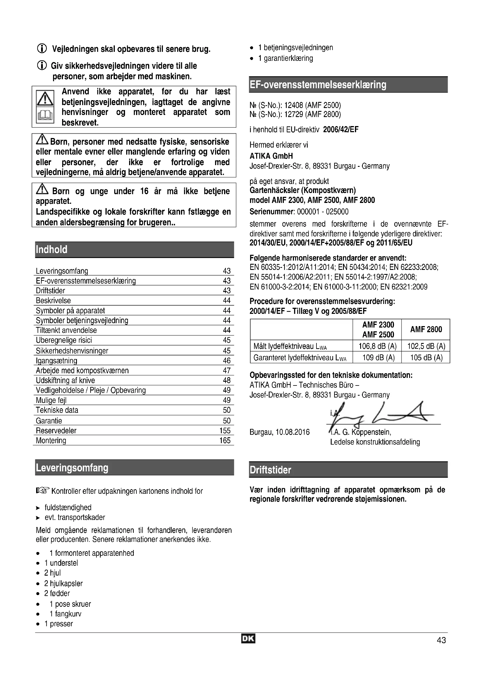 AMF 2800 - Mekanisk flishugger ATIKA - Gratis brugsanvisning og manual
