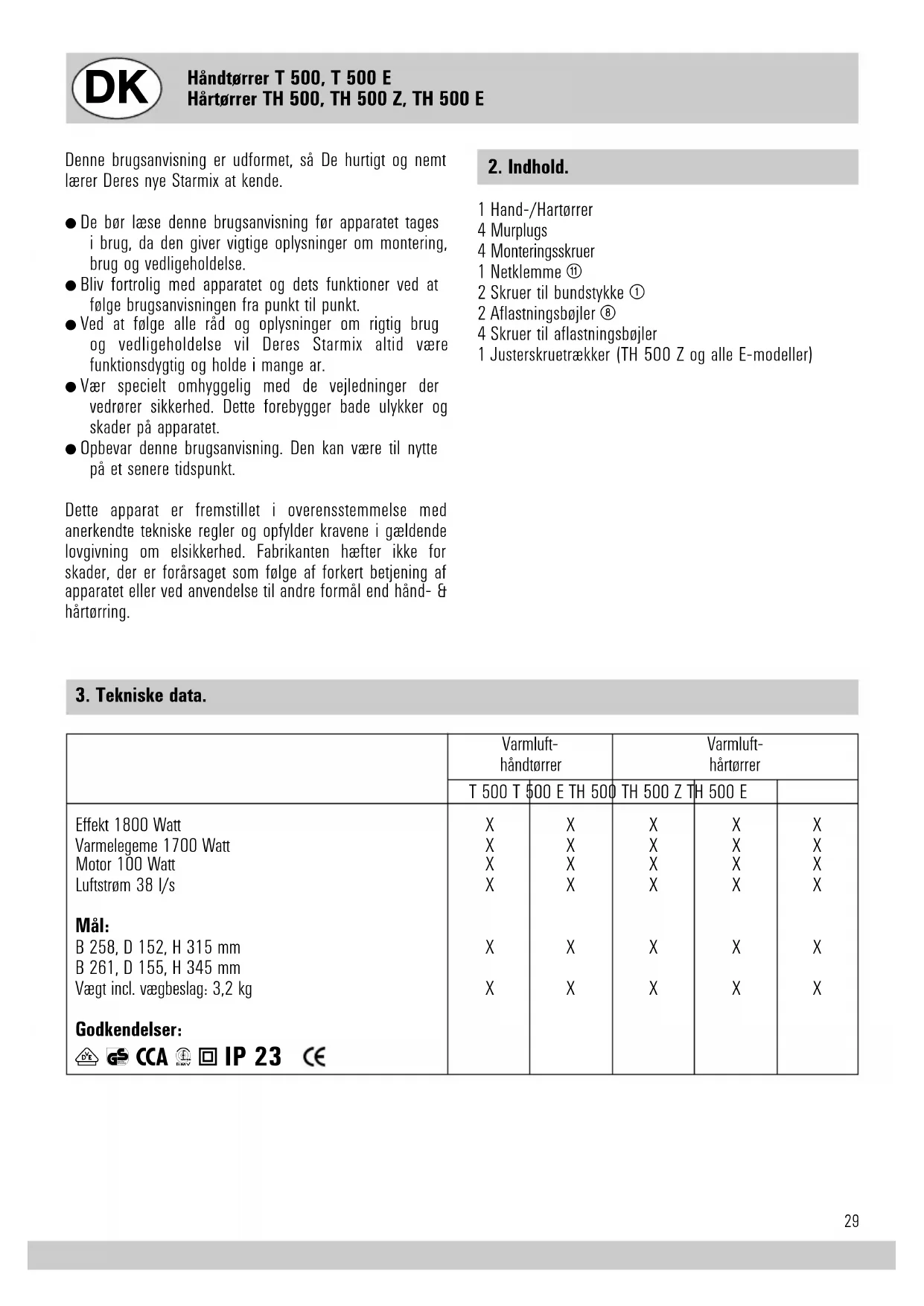 T 500 E - Håndtørrer Starmix - Gratis brugsanvisning og manual