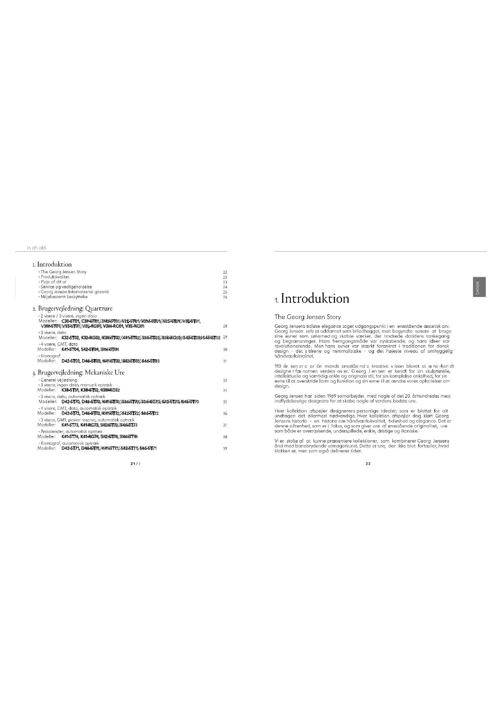 Hver kollektion alspeijer designeren personlige idenler, som er blottet for all undtagen det allermost nadvendige. Hver kollektion aspejier dog kart Georg Jensen's historie - en historie om handveikskvalitet, tidished og elegance. Det er dette stilenheden, som er i fokus, og som giver une anestende originalit, ure som boc er overroskancic, underspilledc, cnlc, dristige og konikse.