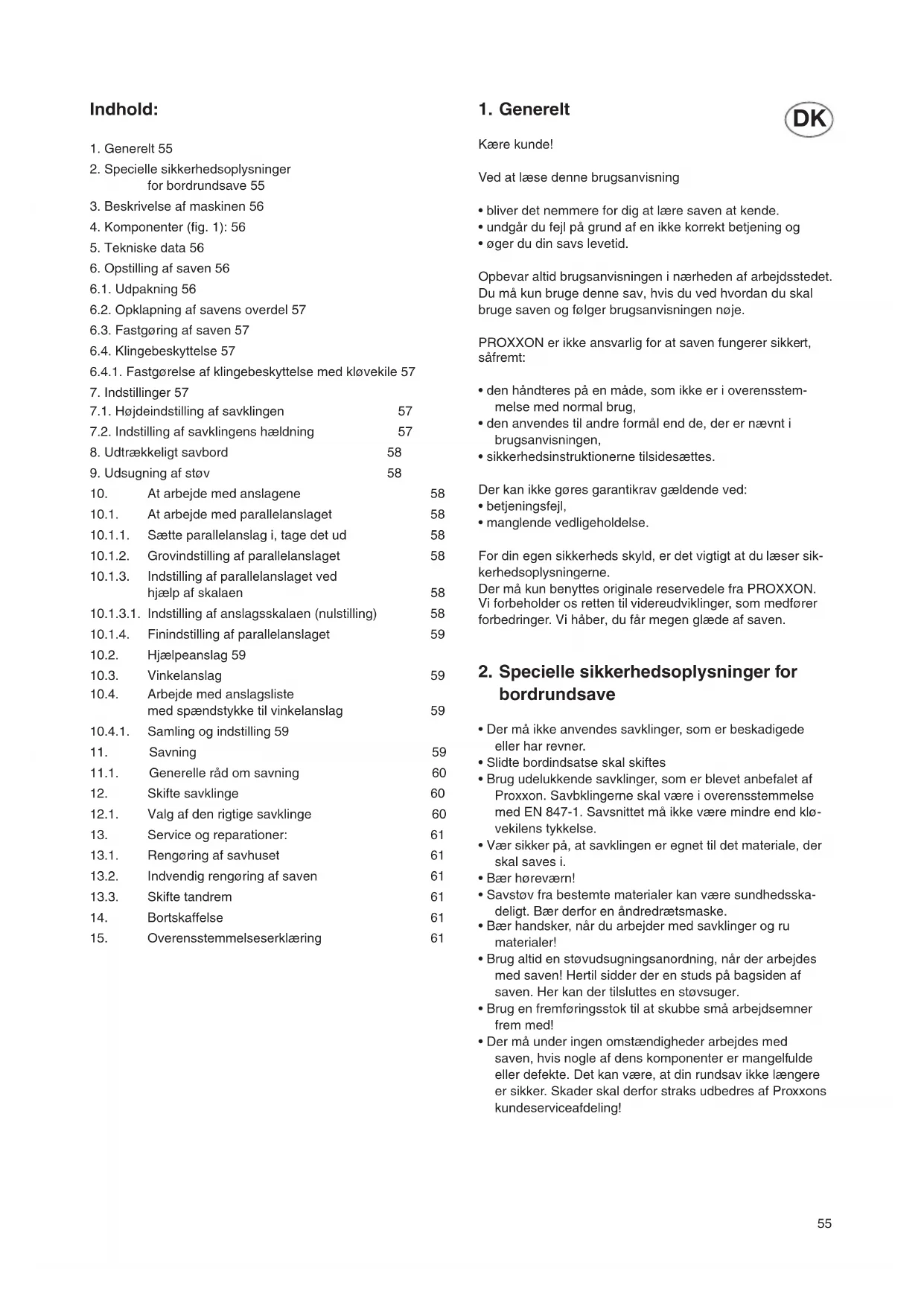 - Specielle sikkerhedsoplysninger for bordrundsave 55