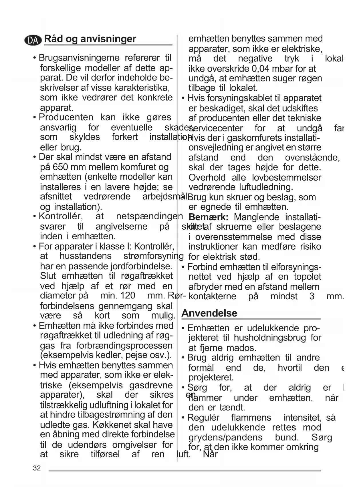 - Brug aldrig emhætten til andre formål end de, hvortil den er projekteret.