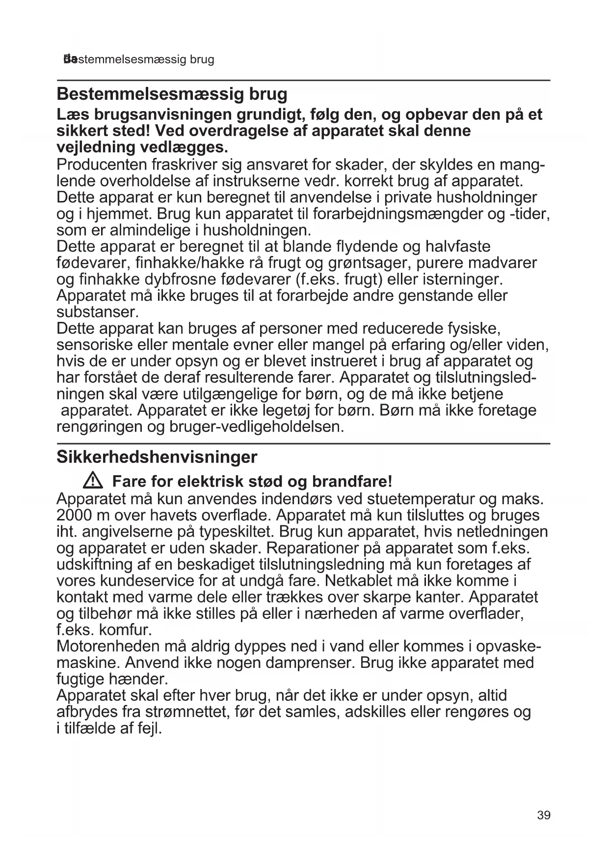 - Sikkerhedshenvisninger p. 39