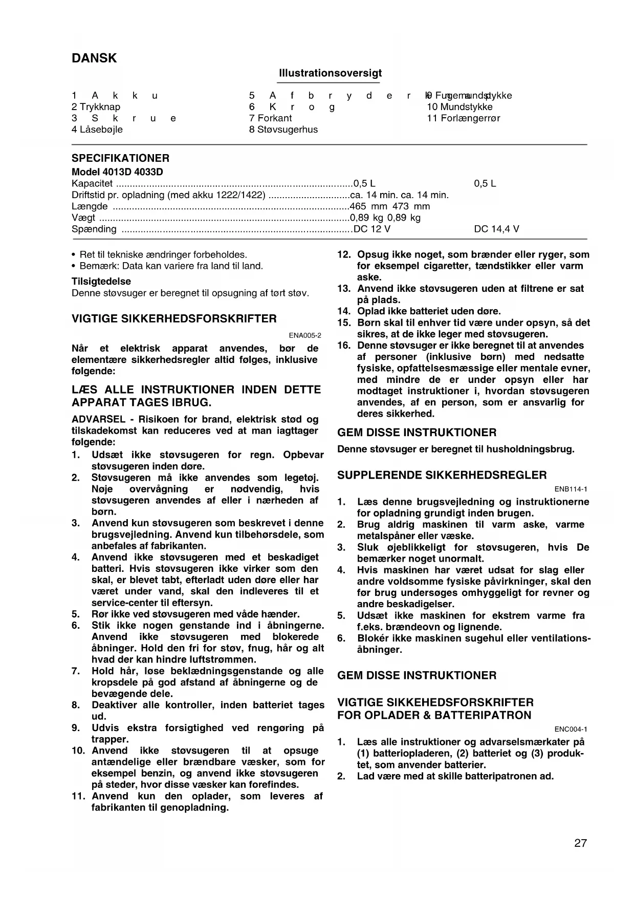 - Stovsugeren må ikke anvendes som legetoj. Noje overvågning er nødvendig, hvist stovsugeren anvendes af uller i naerheden af born.