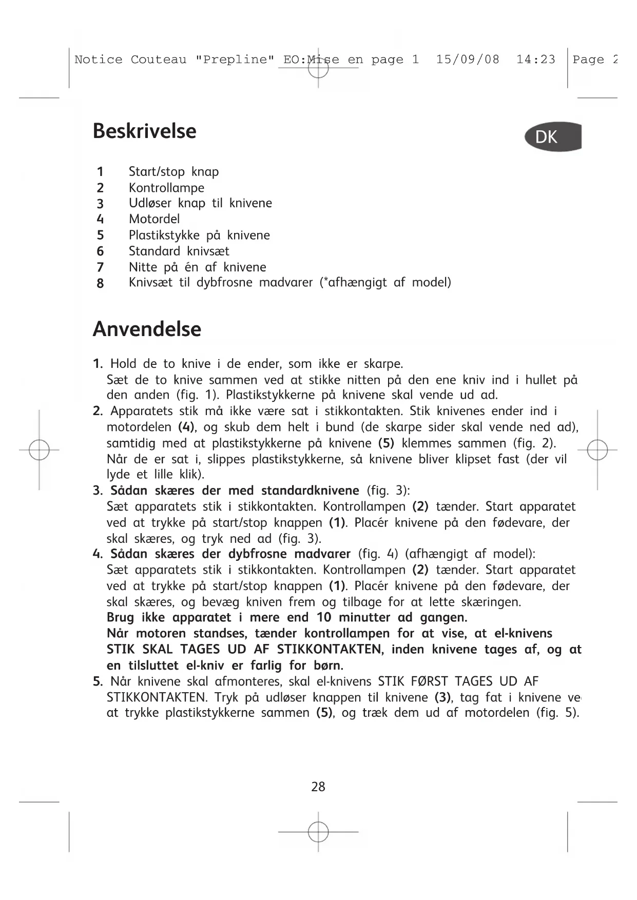 Notice Couteau "Prepline" EO:Mise en page 1 15/09/08 14:23 Page 29I disse tilfælde eller for alle andre reparationer ER DET NØDVENDIGT at henvende sig til en autoriseret reparatør. Apparatet er kun beregnet til husholdningsbrug og må under ingen omstændigheder anvendes til professionelle formål. I så fald bortfalder garantien, og vi kan ikke drages til ansvar. Udtjent elektrisk eller elektronisk produkt
