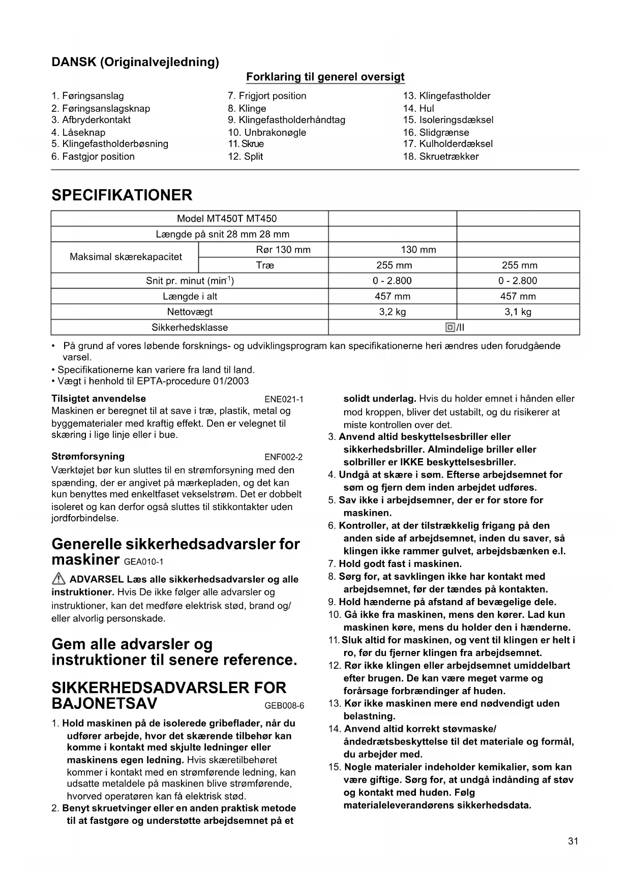 Download vejledningen til din Sav i PDF-format gratis! Find din vejledning MT450T - Maktec og tag din elektroniske enhed tilbage i hånden. På denne side er alle dokumenter nødvendige for brugen af din enhed offentliggjort. MT450T af mærket Maktec.