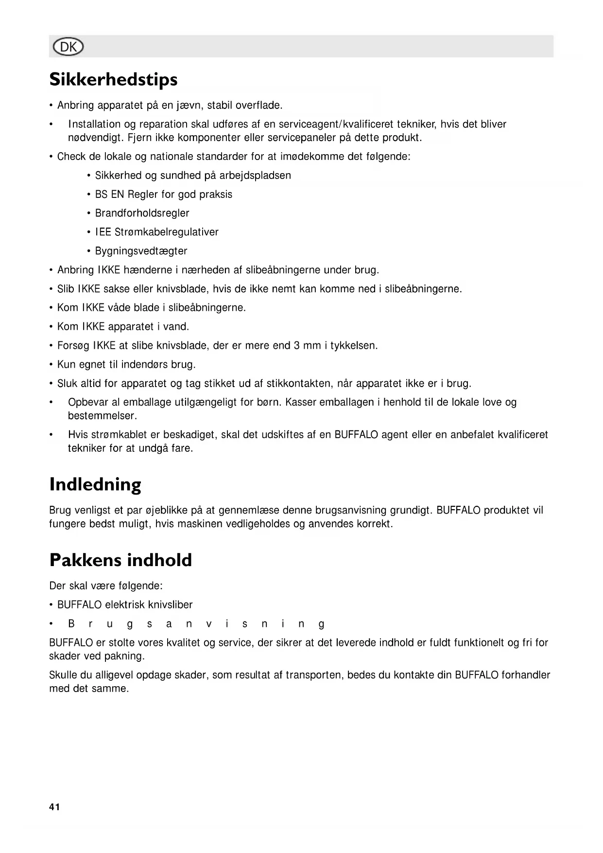 Skulle du alligevel opdage skader, som risultat af transporten, bedes du kontakte din BUFFALO forhandler med det samme.