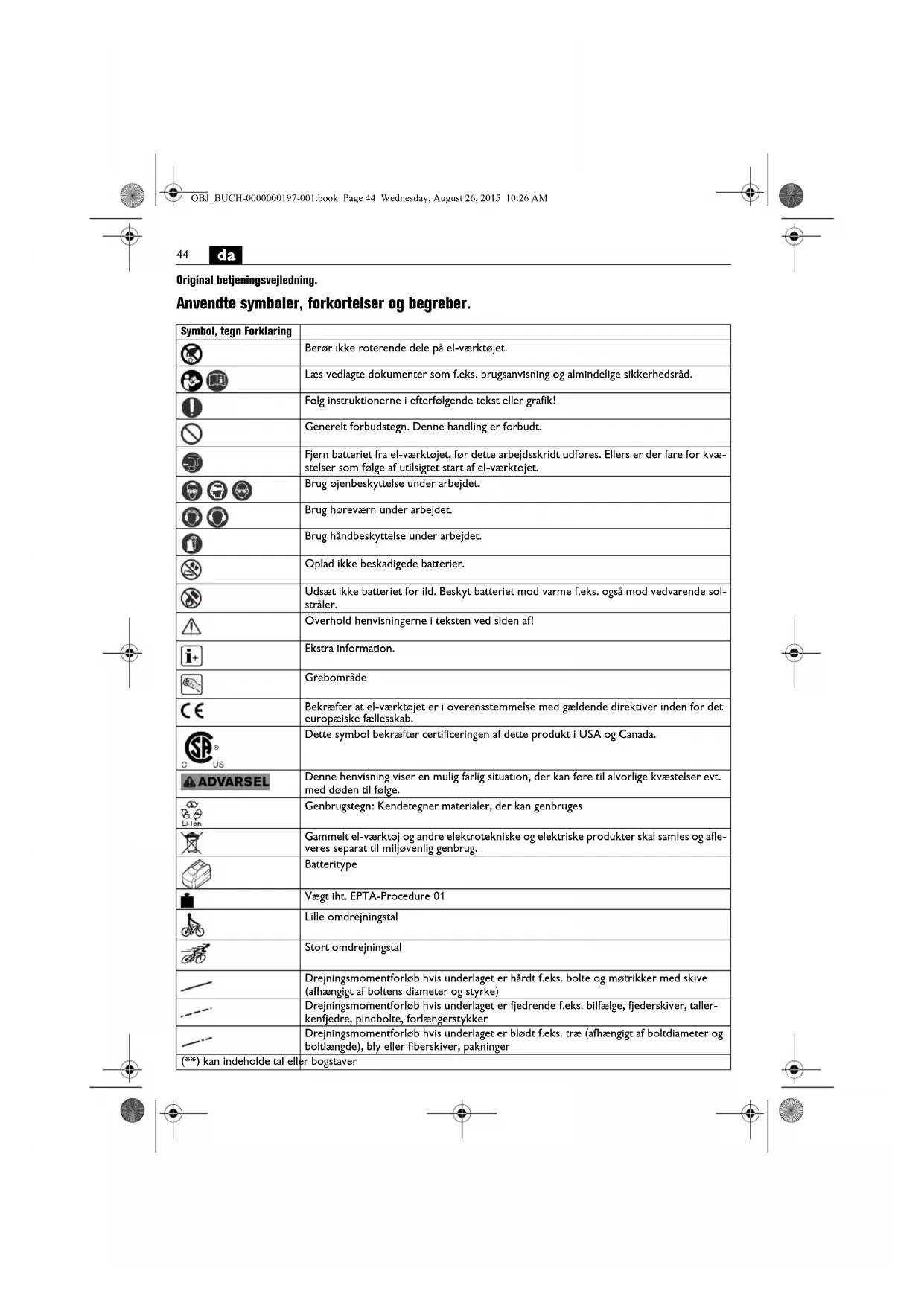 Anvend ikke dette el-værktøj, før du har læst nærværende brugsanvisning samt vedlagte „Almindelige sikkerhedsråd“ (skriftnummer