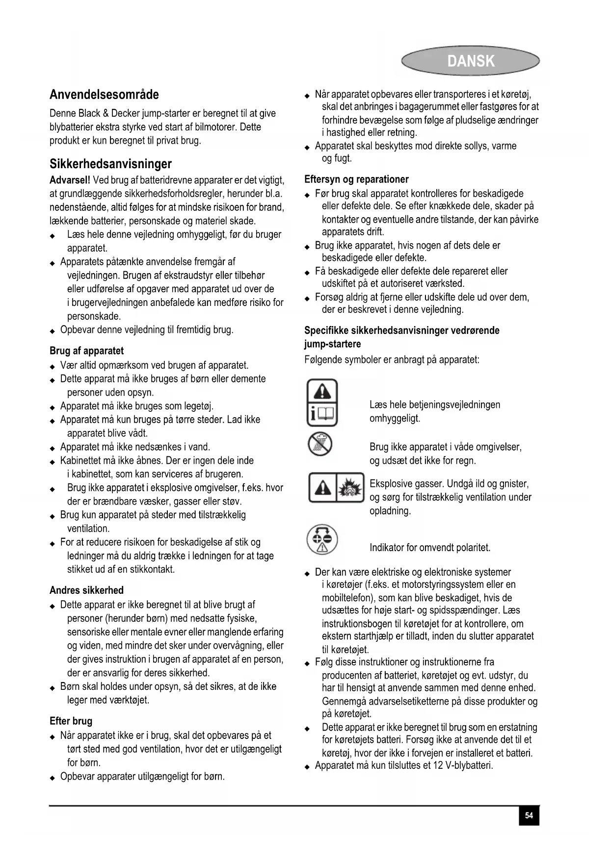 Denne Black & Decker jump-starter er beregnet til at give blybatterier ekstra styrke ved start af bilmotorer. Dette produit er kun beregnet til privat brug.