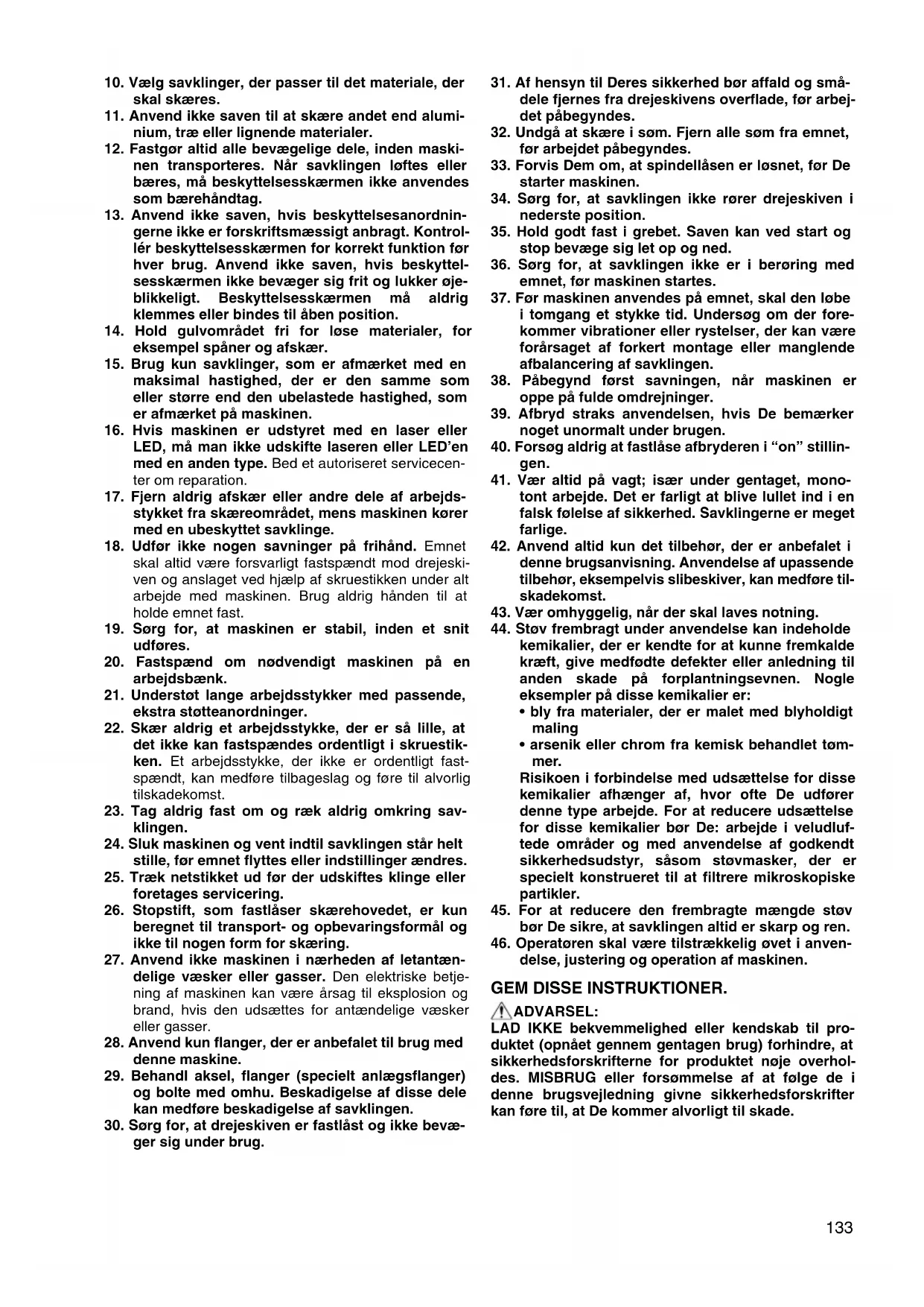 - Sørg altid for, at klingen er skarp og ren for at opnå det bedste resultat. Forsøg på at skære med en sløv/ snavset klinge kan medføre tilbageslag og resultere i alvorlig tilskadekomst. BEMÆRKNING:
