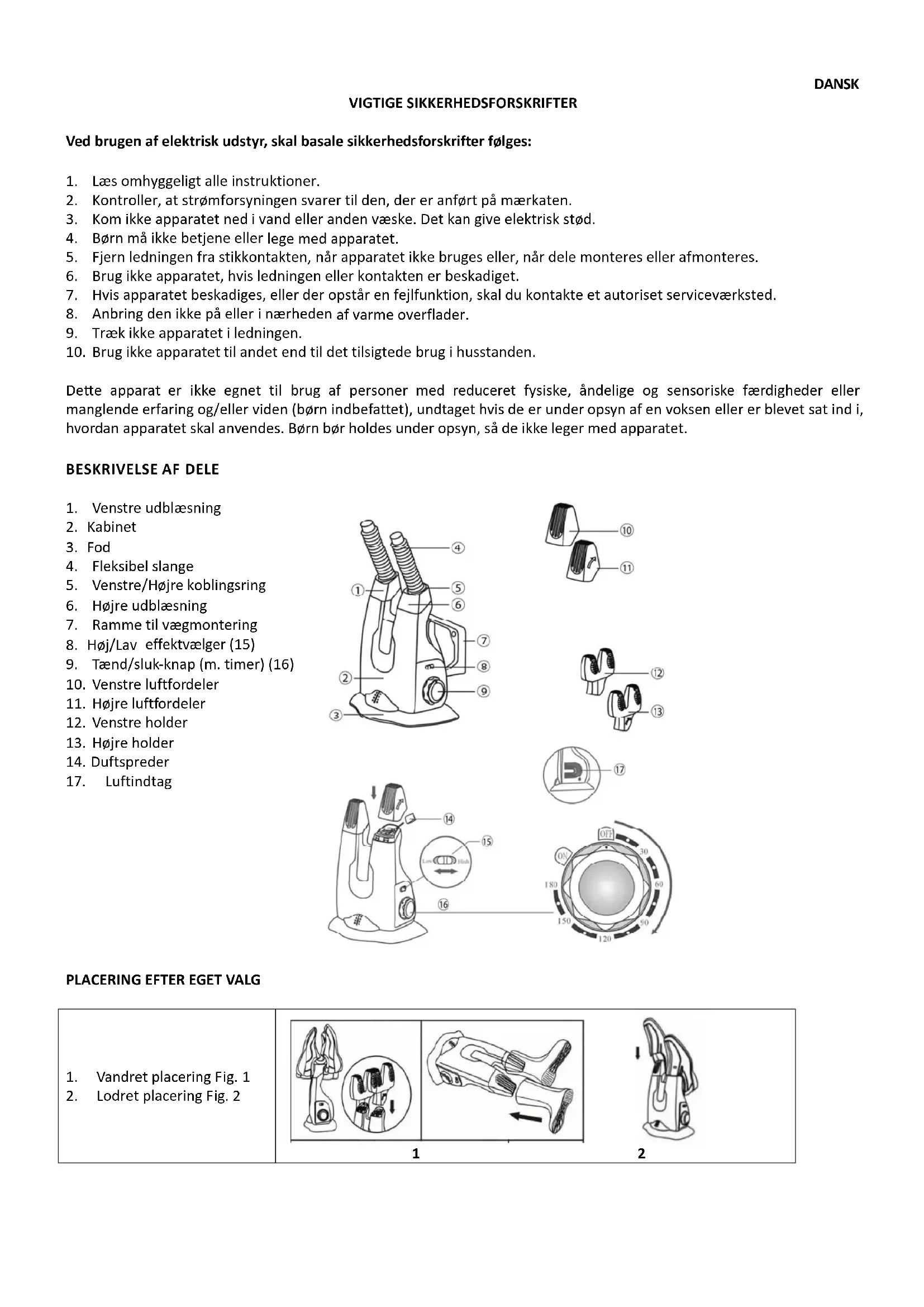 | 1. Vandret placering Fig. 12. Lodret placering Fig. 2 | ![]() | ![]() |