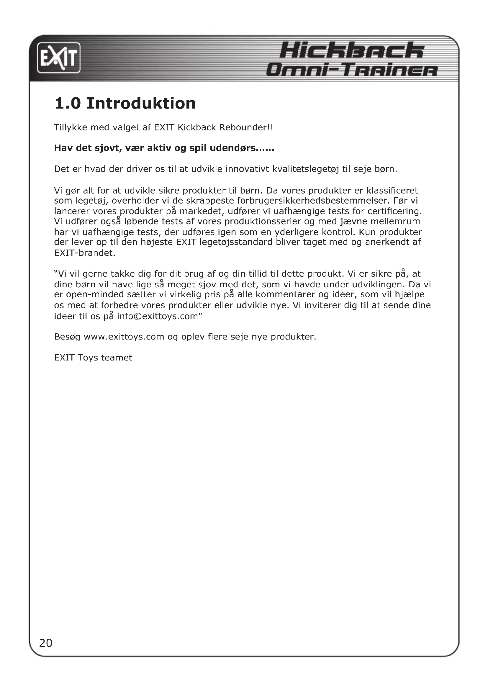 Tillykke med valget af EXIT Kickback Rebounder!!