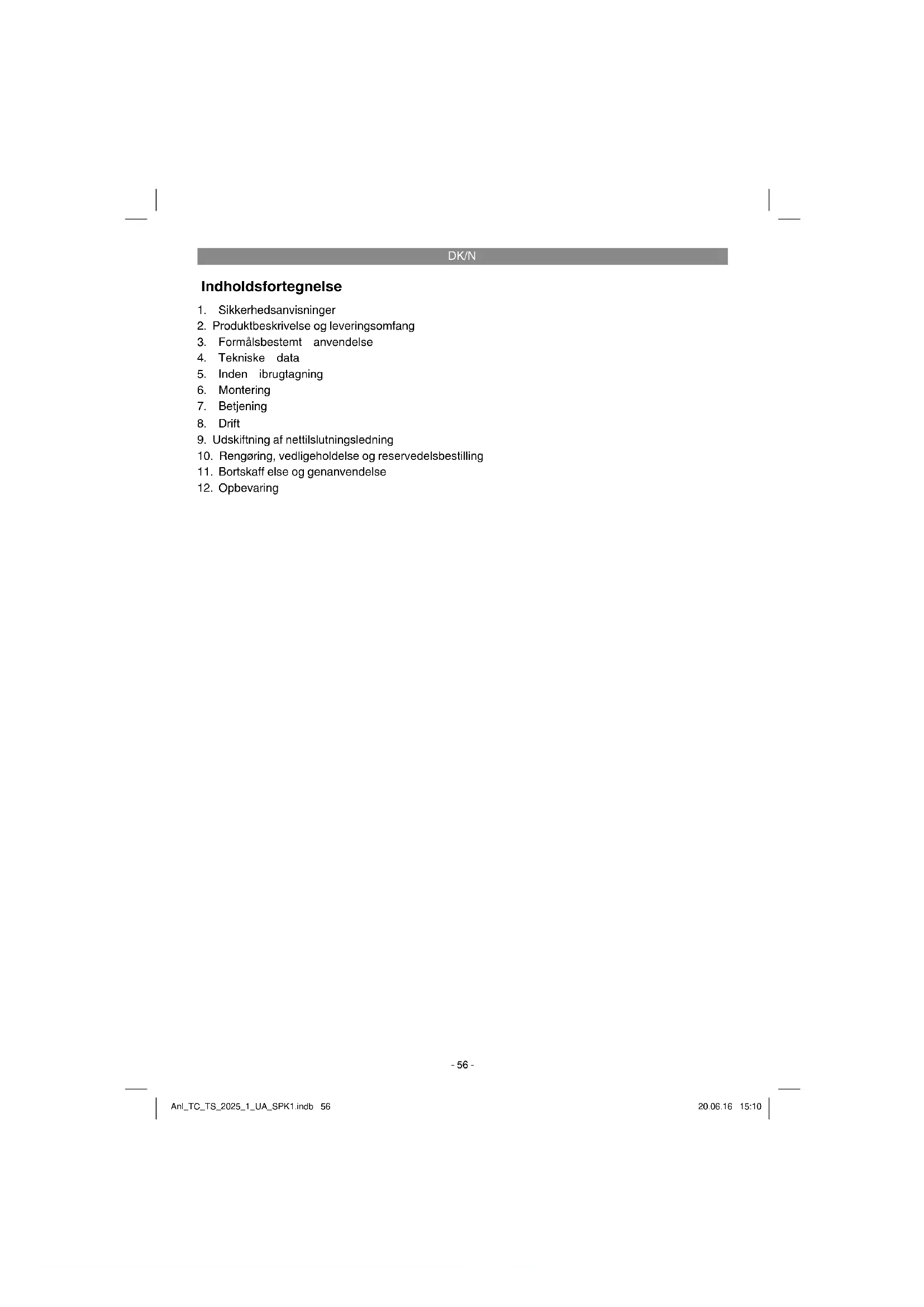 Maskinen og dens tilbehør skal opbevares på et mørkt, tørt og frostfrit sted uden for børns ræk- kevidde. Den optimale lagertemperatur ligger mellem 5 og 30˚C. Opbevar el-værktøjet i den originale emballage. Anl_TC_TS_2025_1_UA_SPK1.indb 64Anl_TC_TS_2025_1_UA_SPK1.indb 64 20.06.16 15:1120.06.16 15:11DK/N