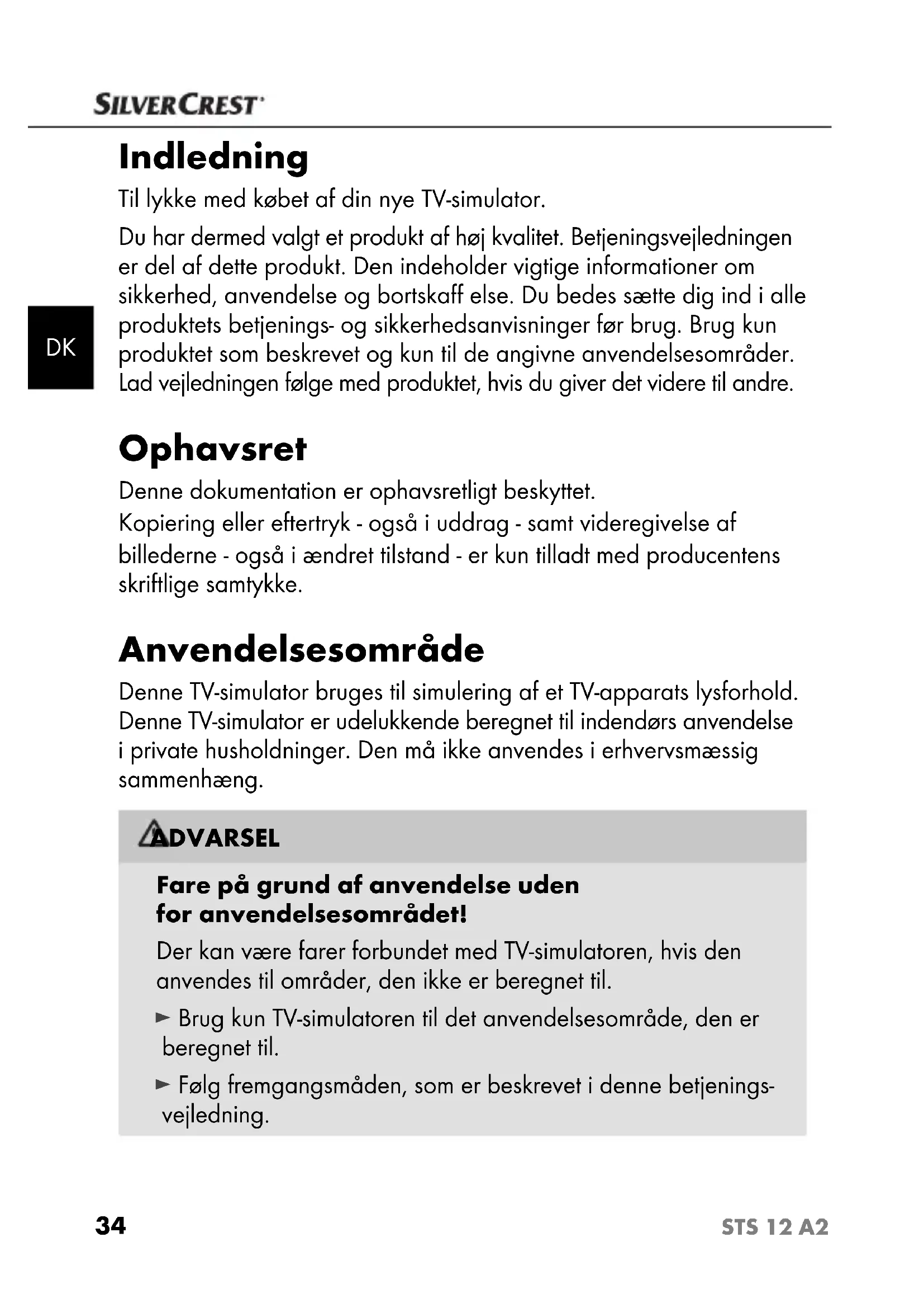 BRUGSANVISNING STS 12 A2 SILVERCREST