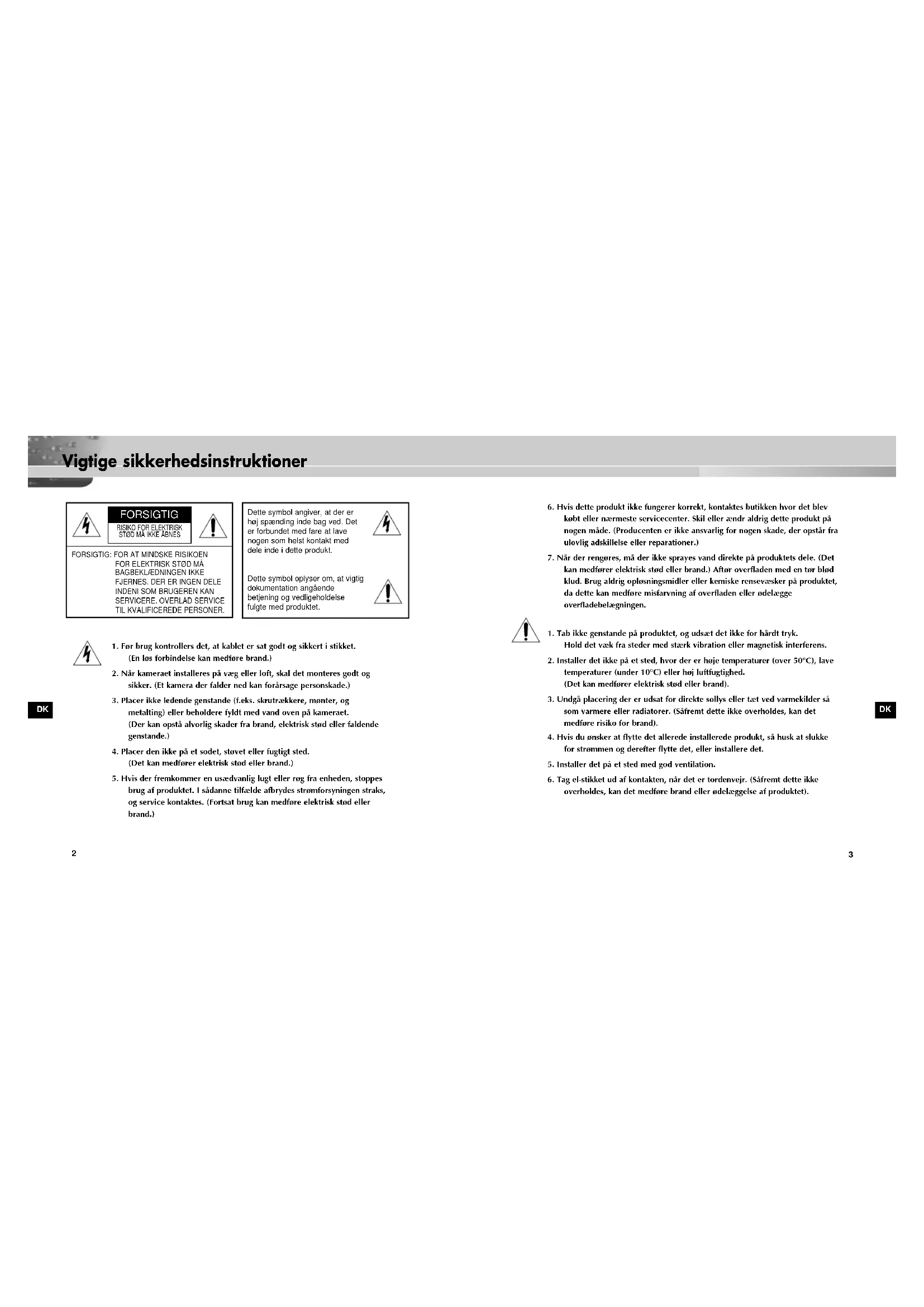 Vigtige sikkerhedsinstruktioner DKDK