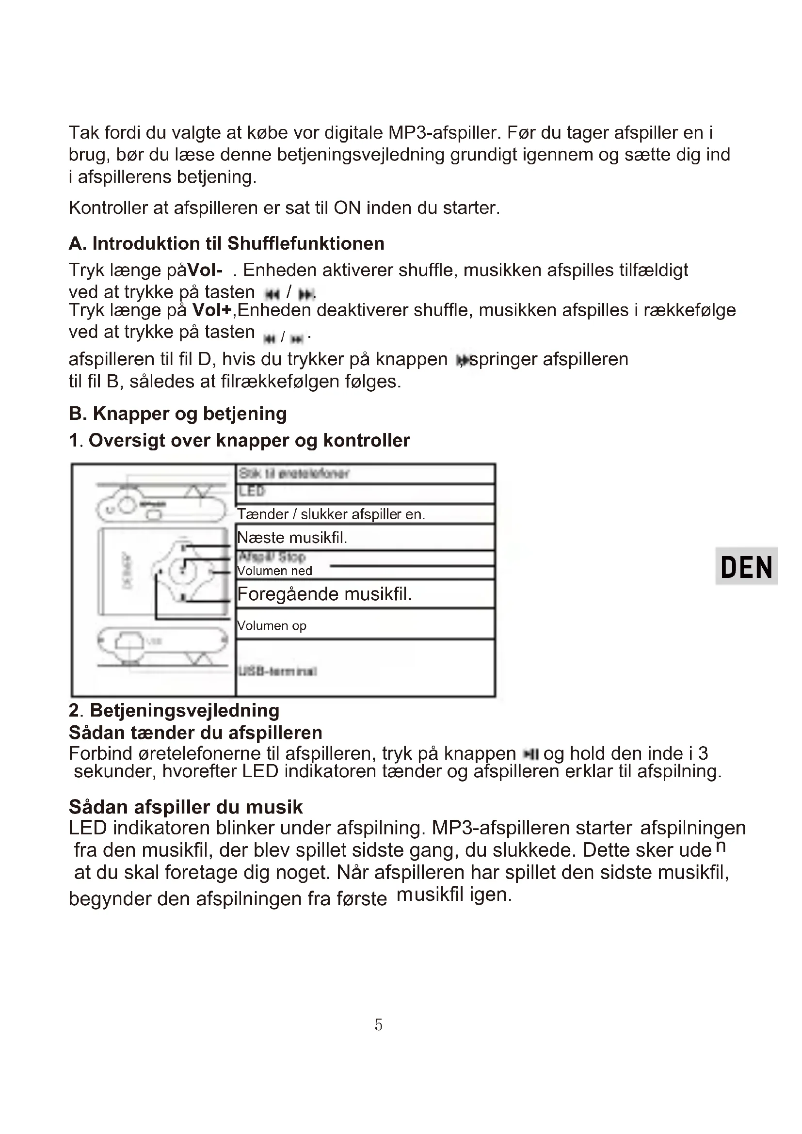 Tak fordi du valgte at købe vor digitale MP3-afspiller. Før du tager afspiller en i brug, bør du læse denne betjeningsvejledning grundigt igennem og sætte dig ind i afspillerens betjening.