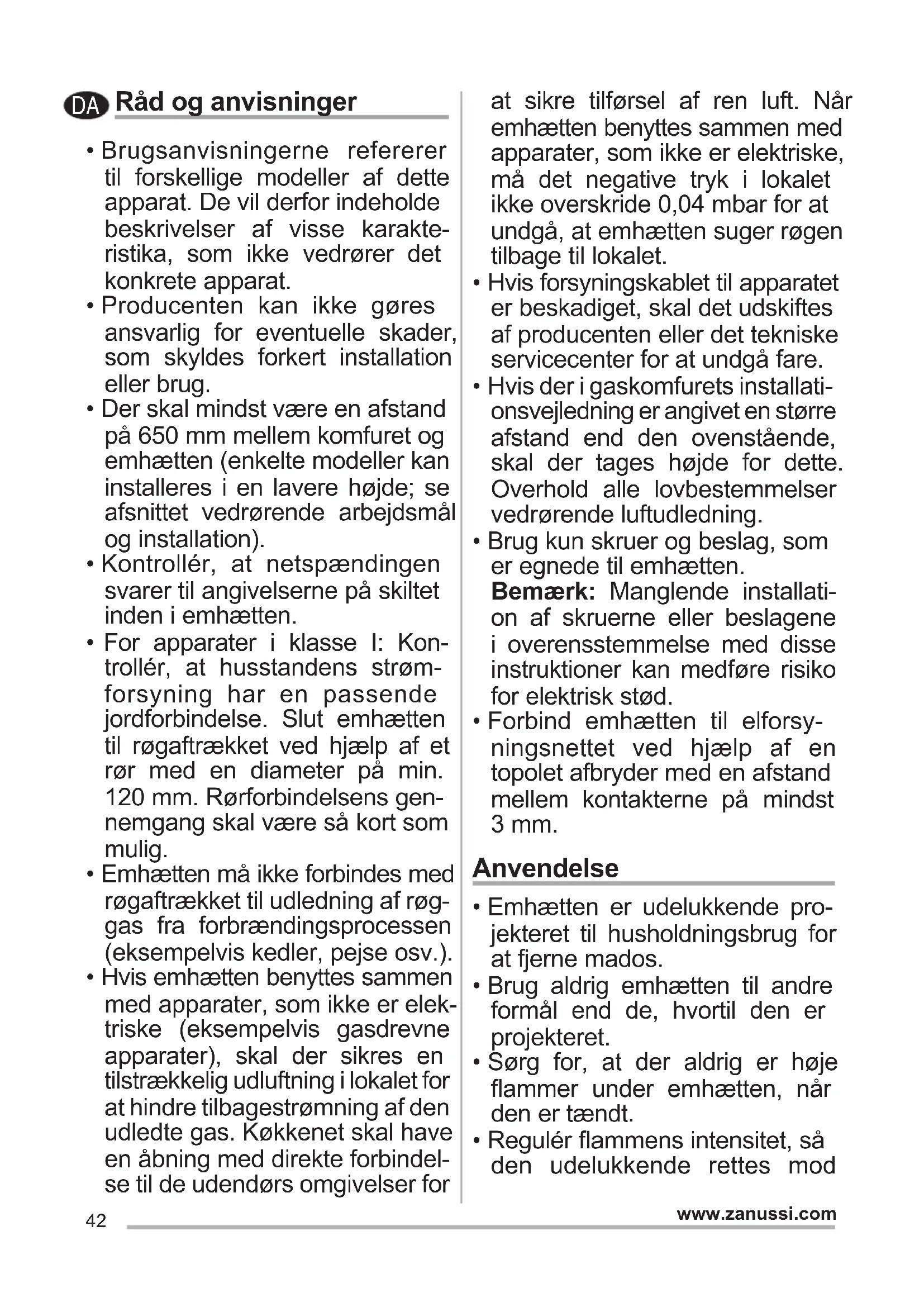- Brug aldrig emhætten til andre formål end de, hvortil den er projekteret.