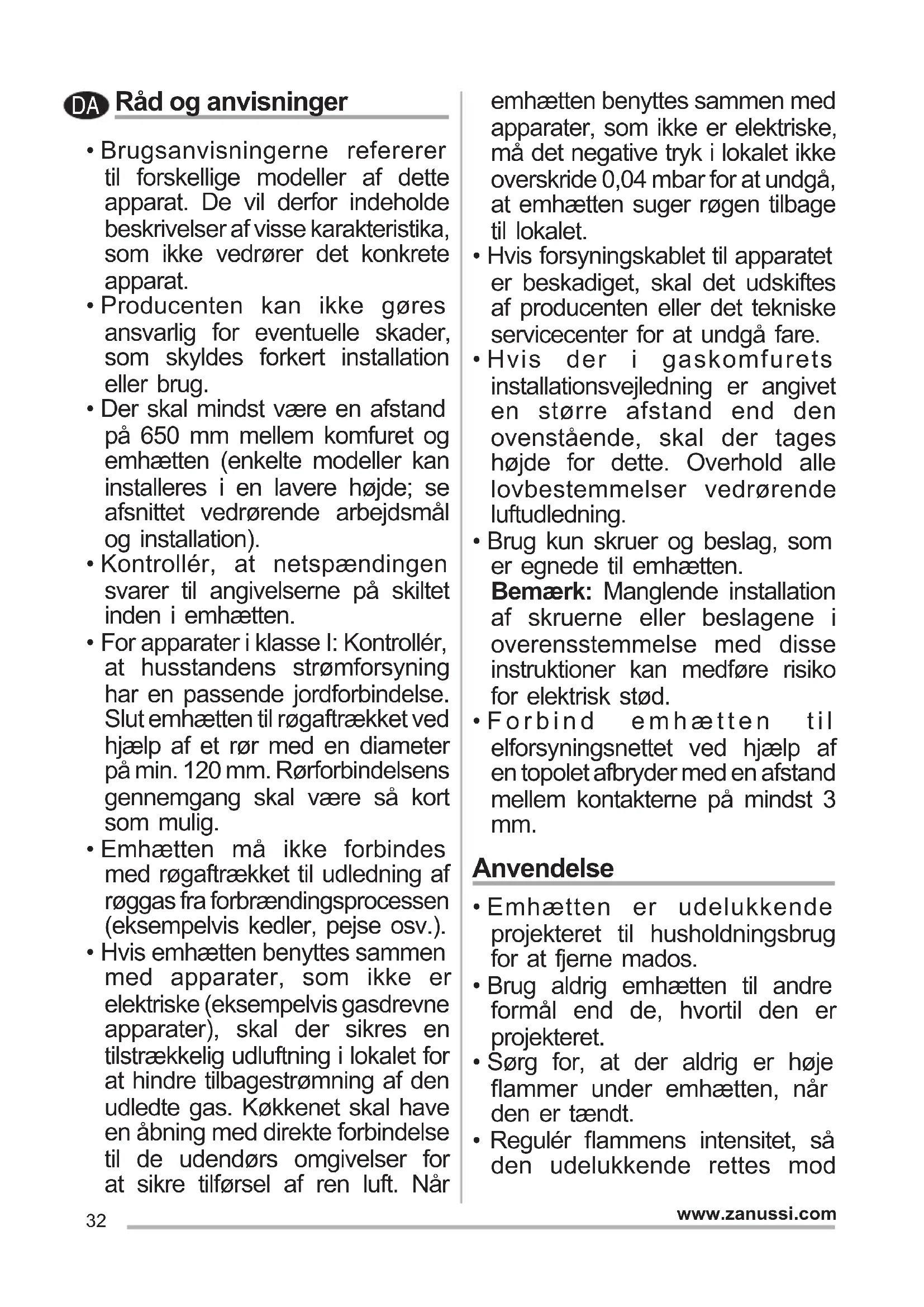 - Brug aldrig emhætten til andre formål end de, hvortil den er projekteret.