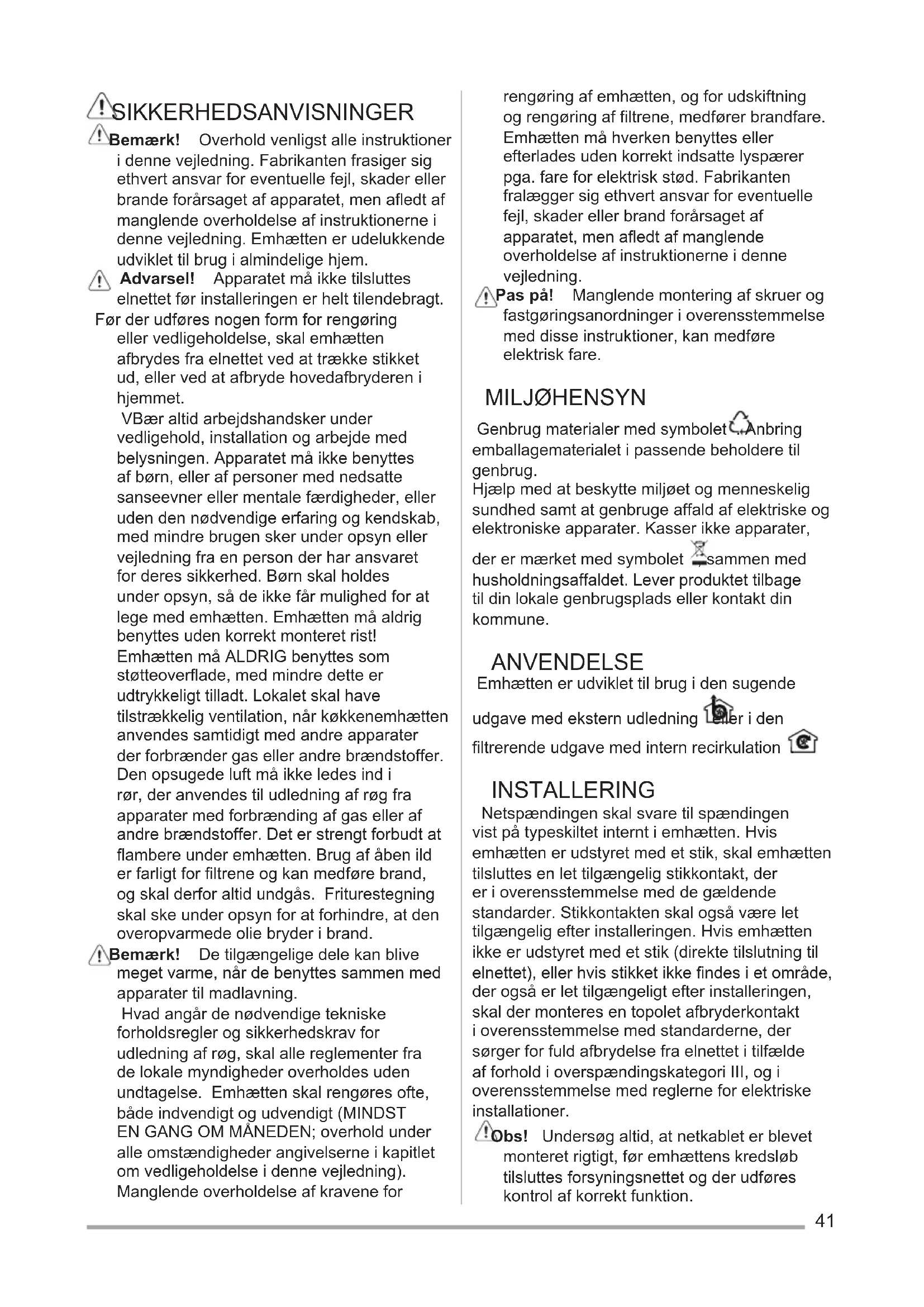 Emhætte Brugsvejledning 41
