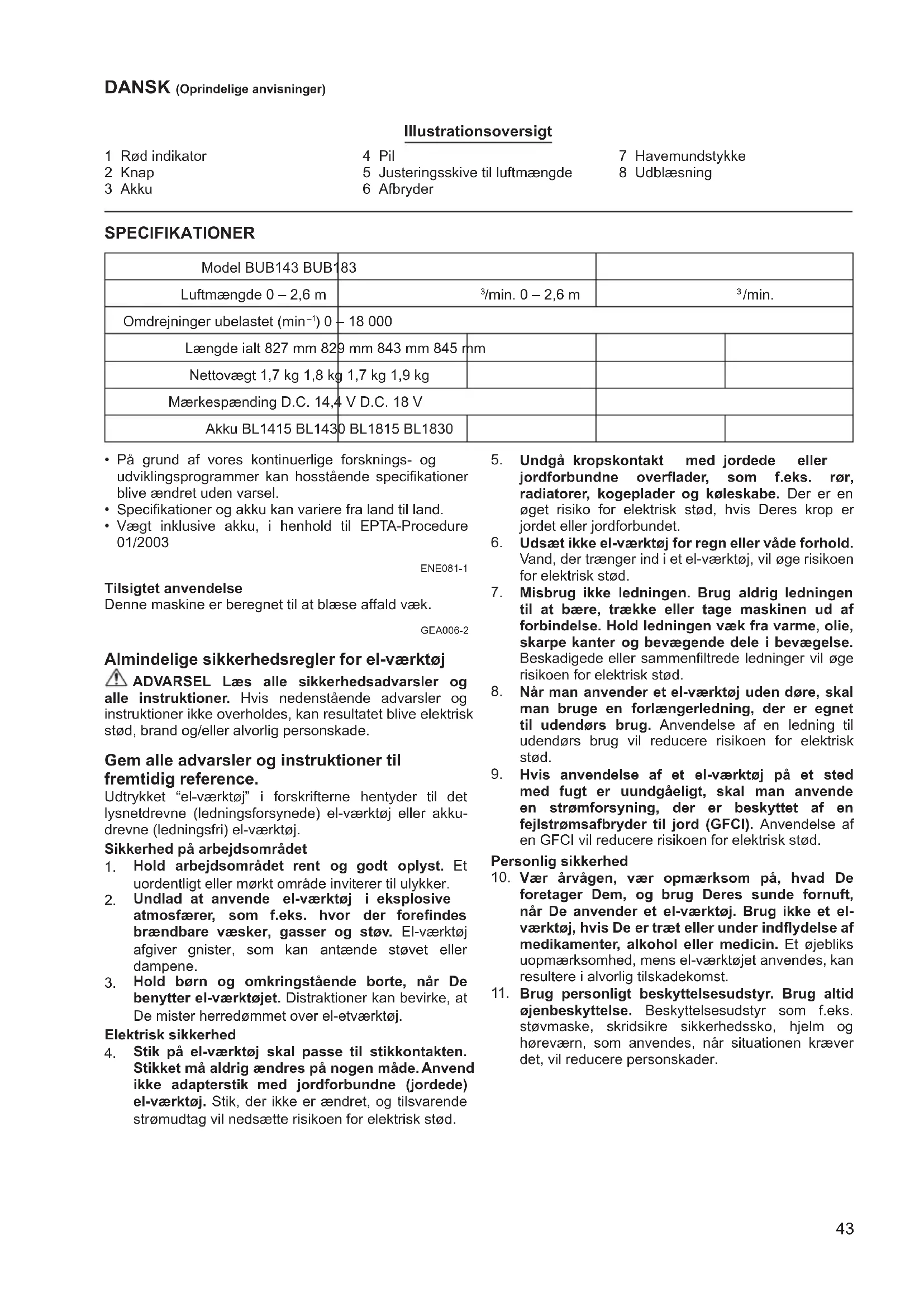 Download vejledningen til din Løvblæser i PDF-format gratis! Find din vejledning BUB143 - MAKITA og tag din elektroniske enhed tilbage i hånden. På denne side er alle dokumenter nødvendige for brugen af din enhed offentliggjort. BUB143 af mærket MAKITA.
