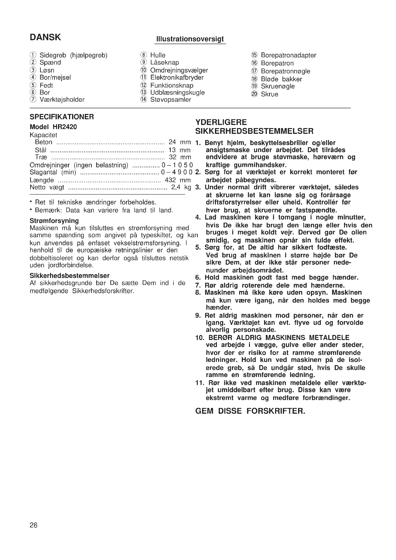 HR2420 - Boremaskine MAKITA - Gratis brugsanvisning og manual