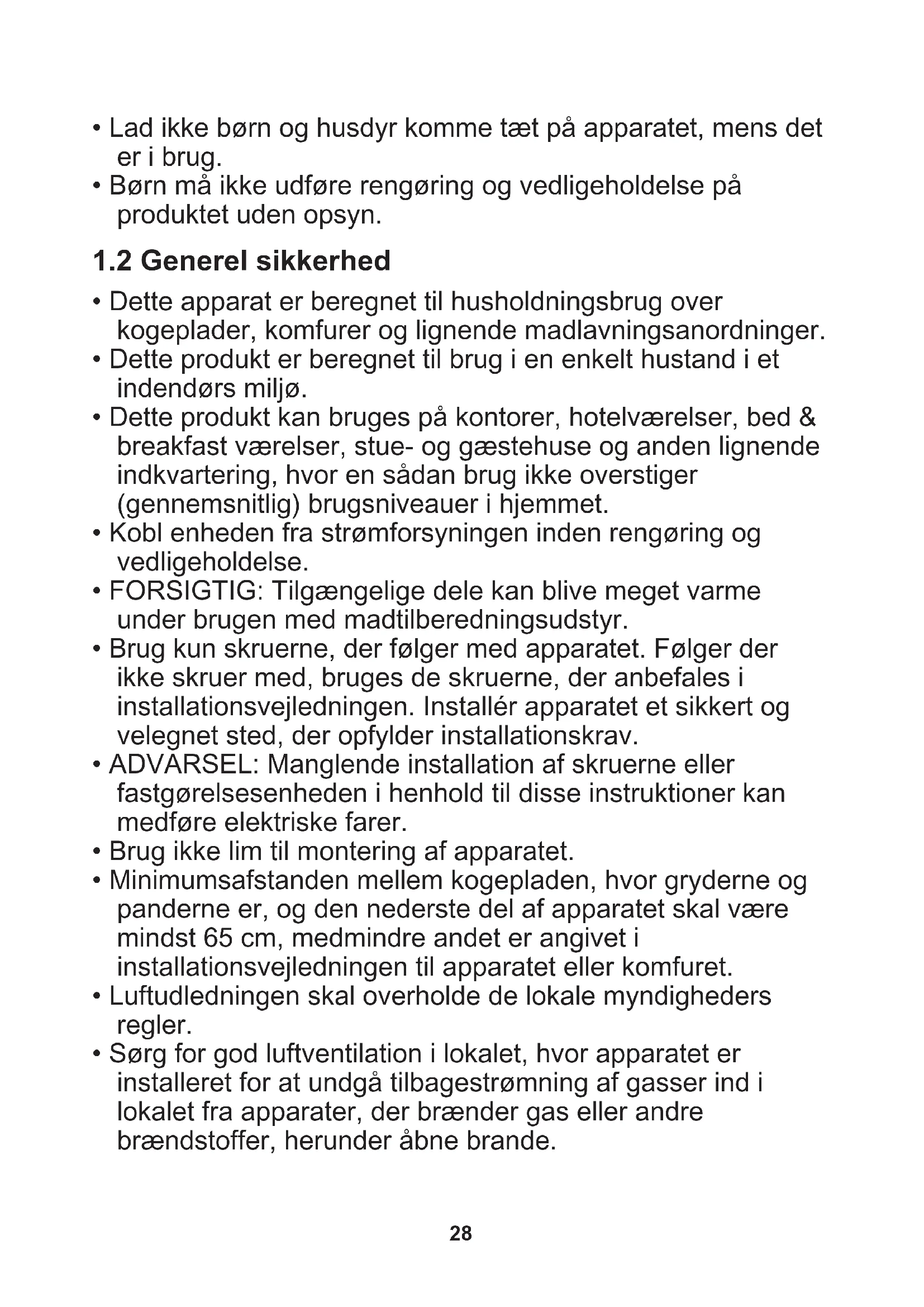 - Rengør fedtfiltre regelmæssigt (mindst hver anden måned) og fjern fedtaflejringer fra apparatet for at forhindre brandfare.