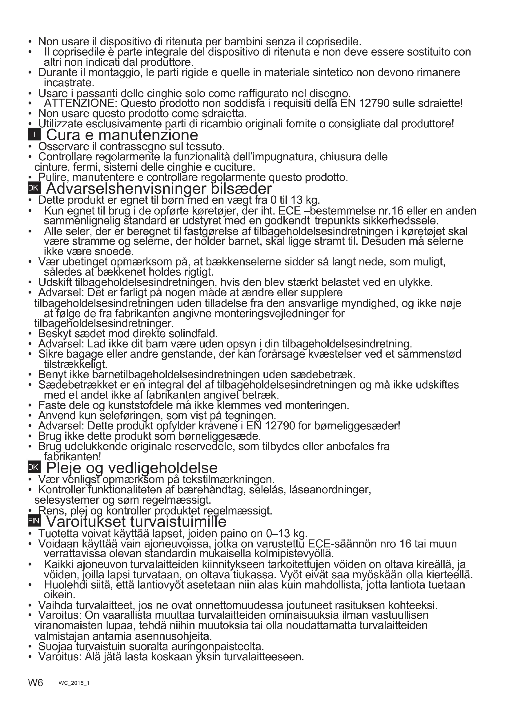 - Rens, plej og kontroller produktet regelmæssigt. FIN Varoitukset turvaistuimille