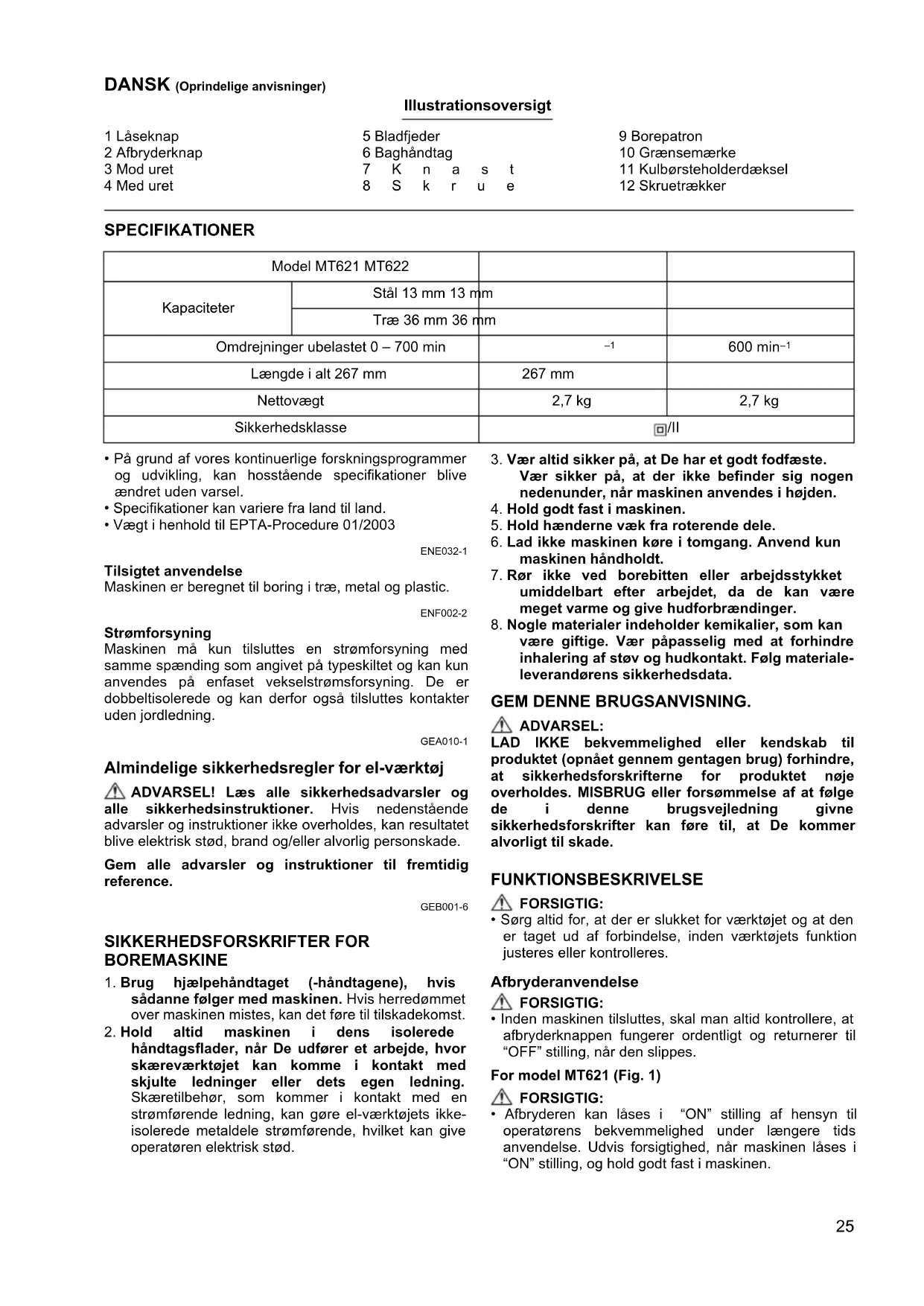 BRUGSANVISNING MT622 Maktec