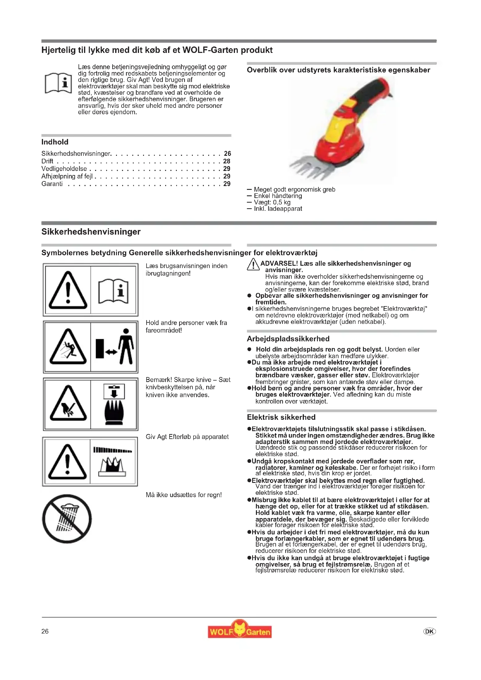 - Hjertelig til lykke med dit køb af et WOLF-Garten produkt Indhold Sikkerhedshenvisninger p. 26